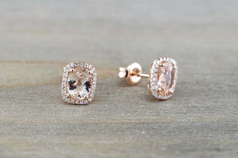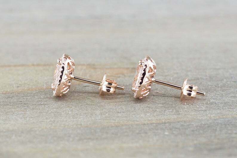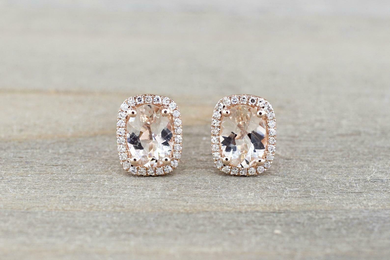 1.7ct Oval Cut Peach Morganite Diamond Halo Stud Earrings 14k Rose Gold Finish