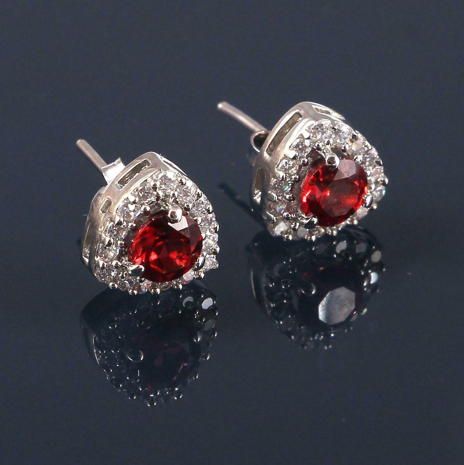 1.9ct Stud Earrings Round Cut Garnet Diamond Halo Design 14k White Gold Finish