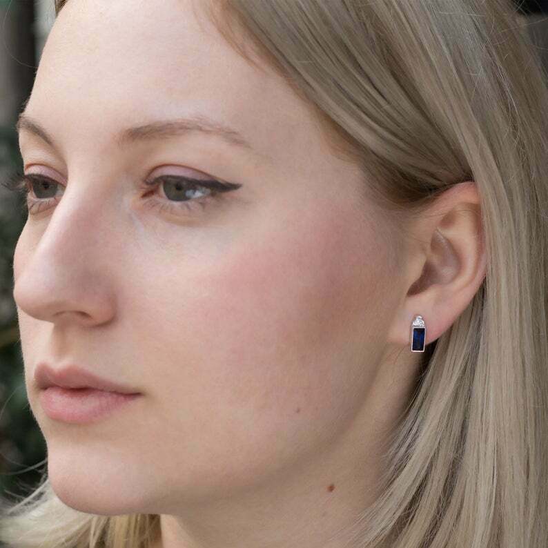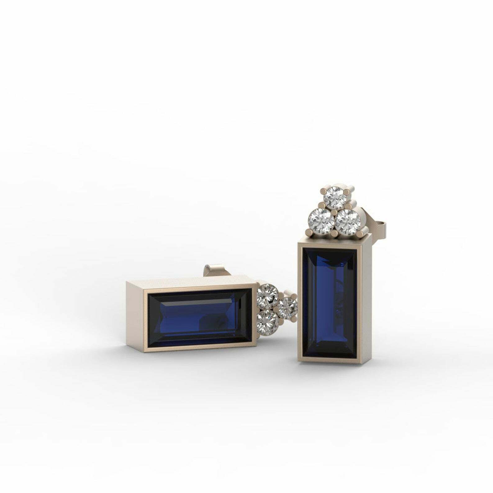 1ct Baguette Cut Blue Sapphire Diamond Elegant Stud Earrings 14k Yellow Gold Over
