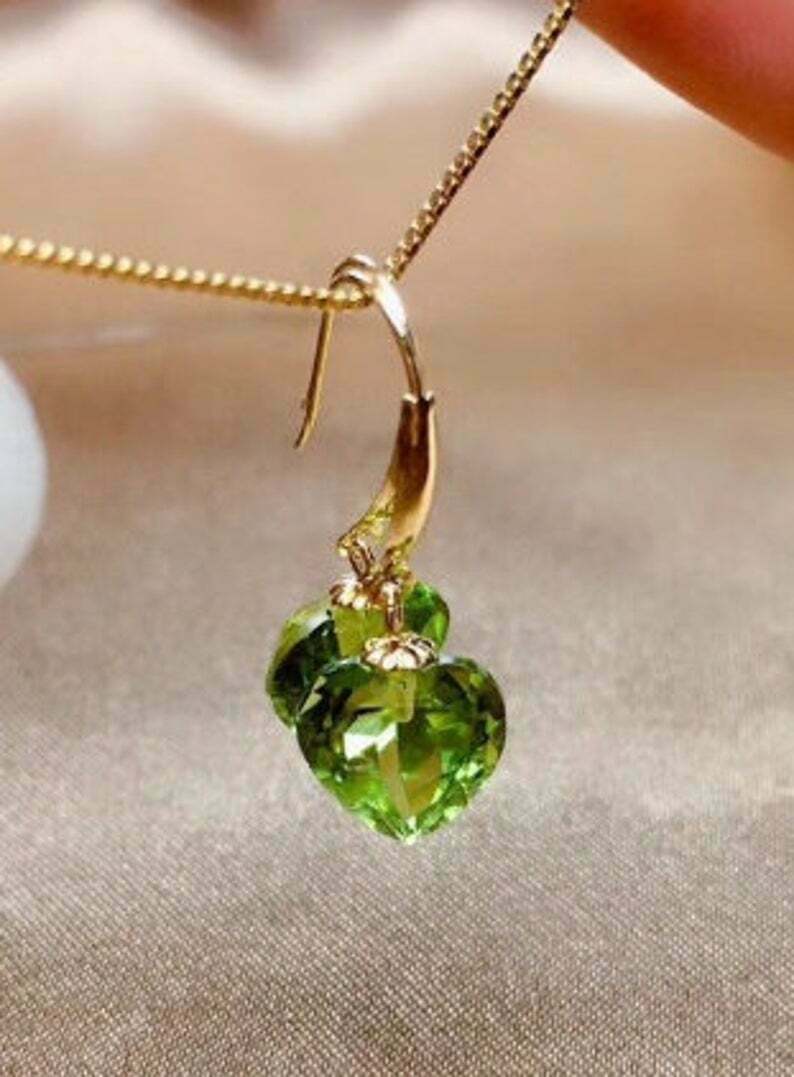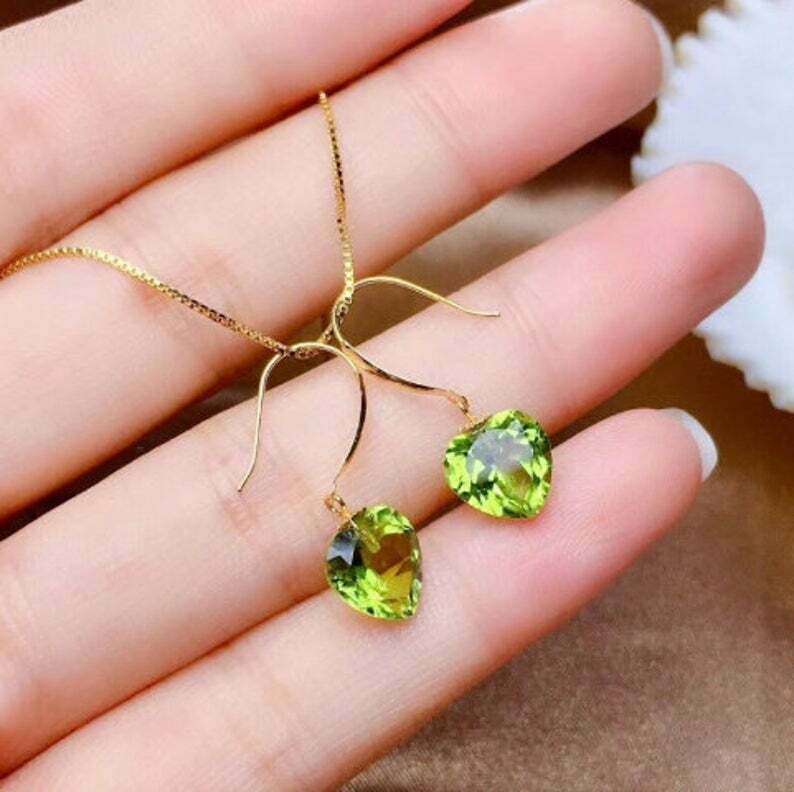1ct Drop Earrings Heart Cut Green Peridot Solitaire 14k Yellow Gold Finish