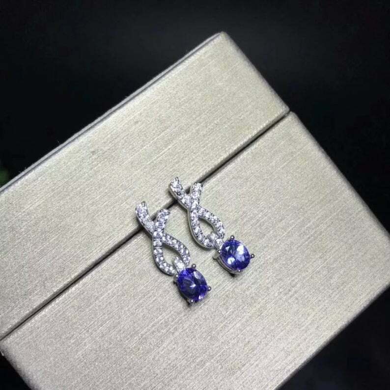 1ct Drop Earrings Oval Cut Blue Tanzanite Stylish Design 14k White Gold Finish