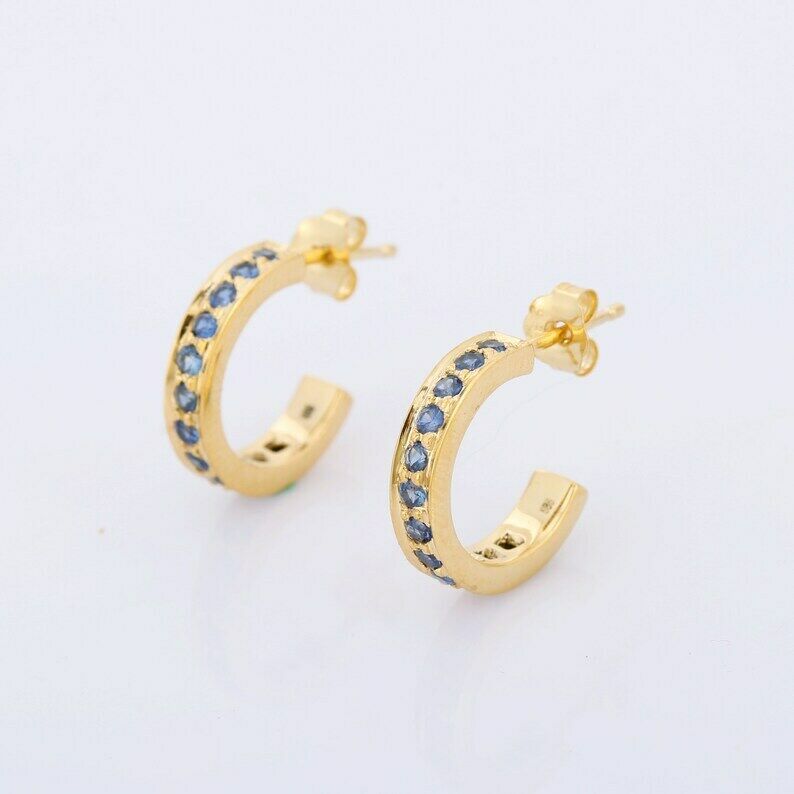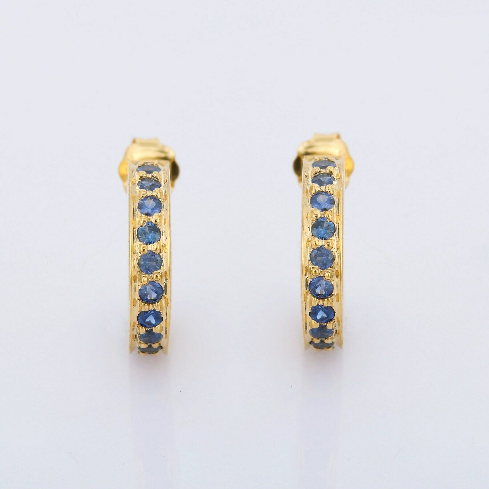 1ct Drop Earrings Round Cut Blue Sapphire Petite Design 14k Yellow Gold Finish