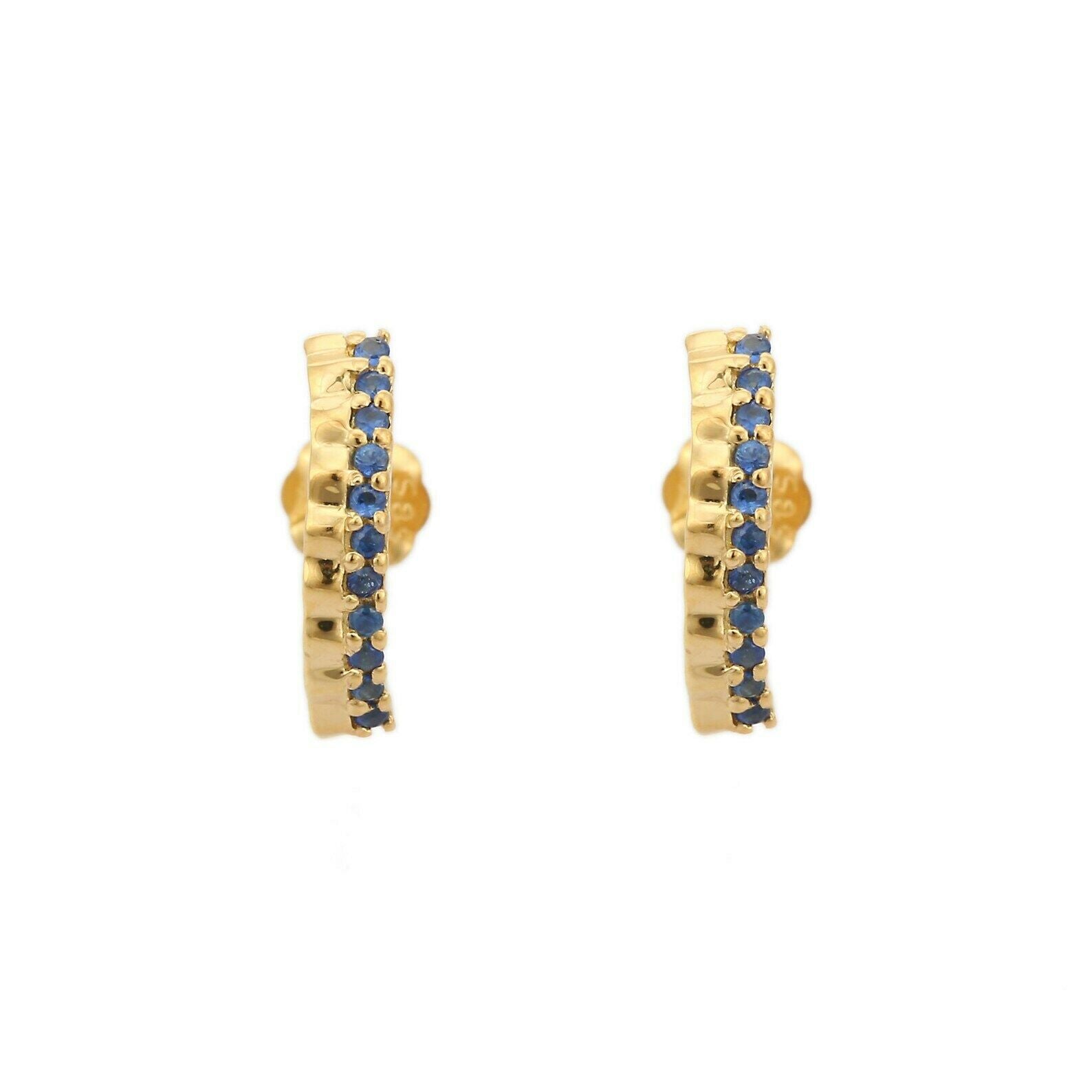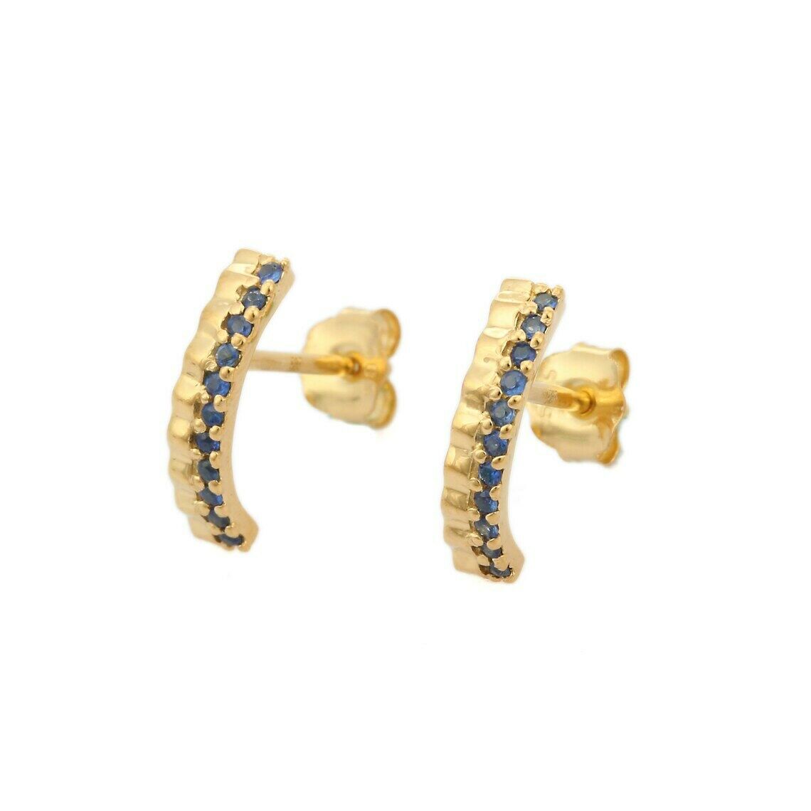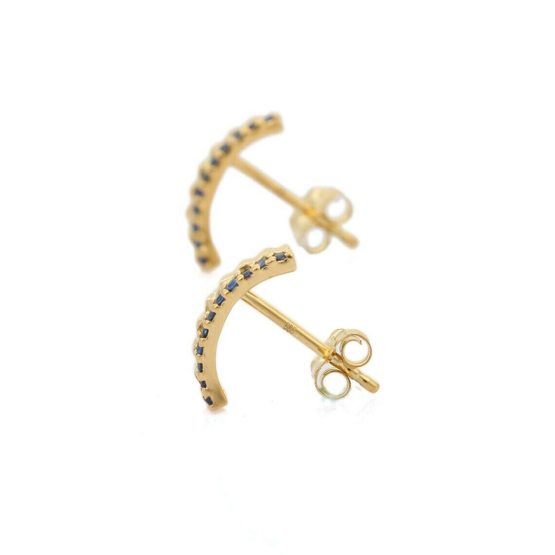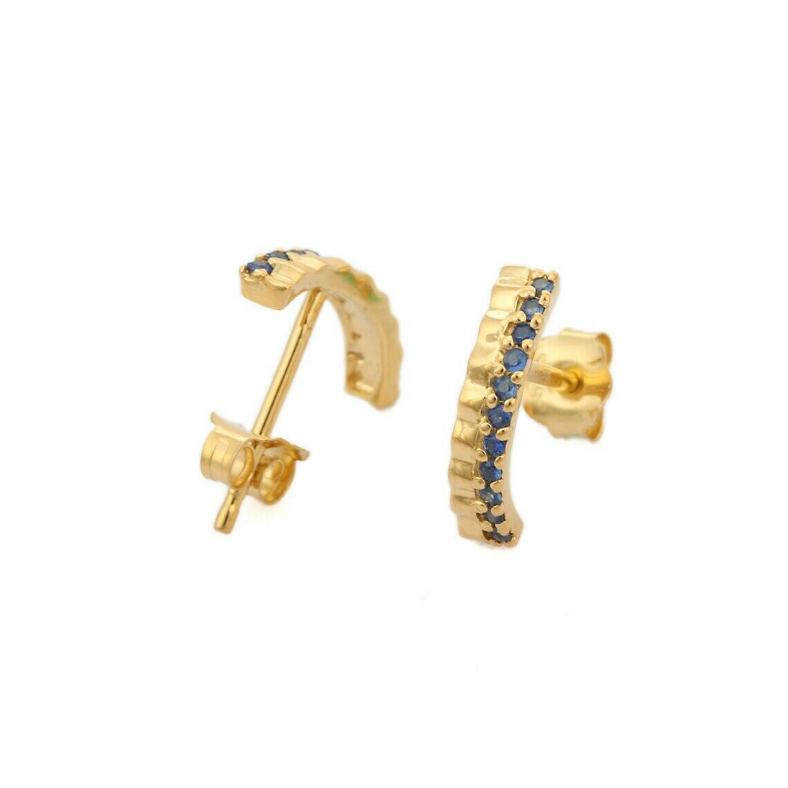 1ct Drop Earrings Round Cut Blue Sapphire Vertical Bar 14k Yellow Gold Finish