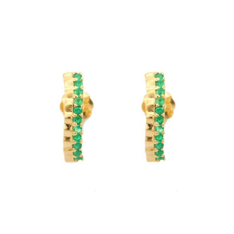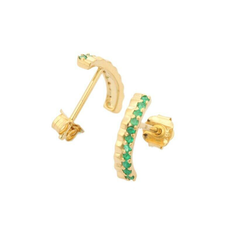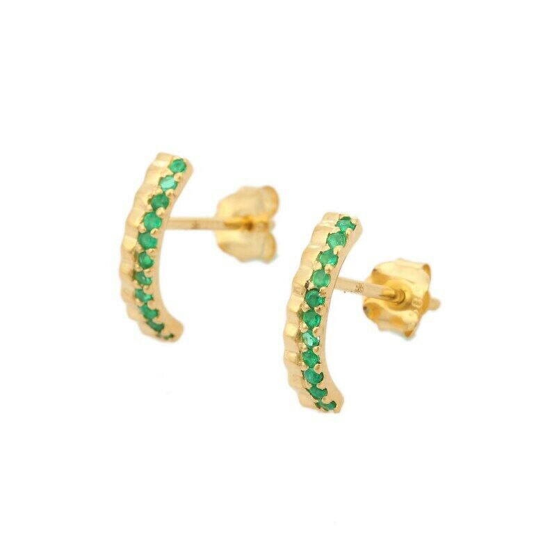 1ct Drop Earrings Round Cut Green Emerald Vertical Bar 14k Yellow Gold Finish