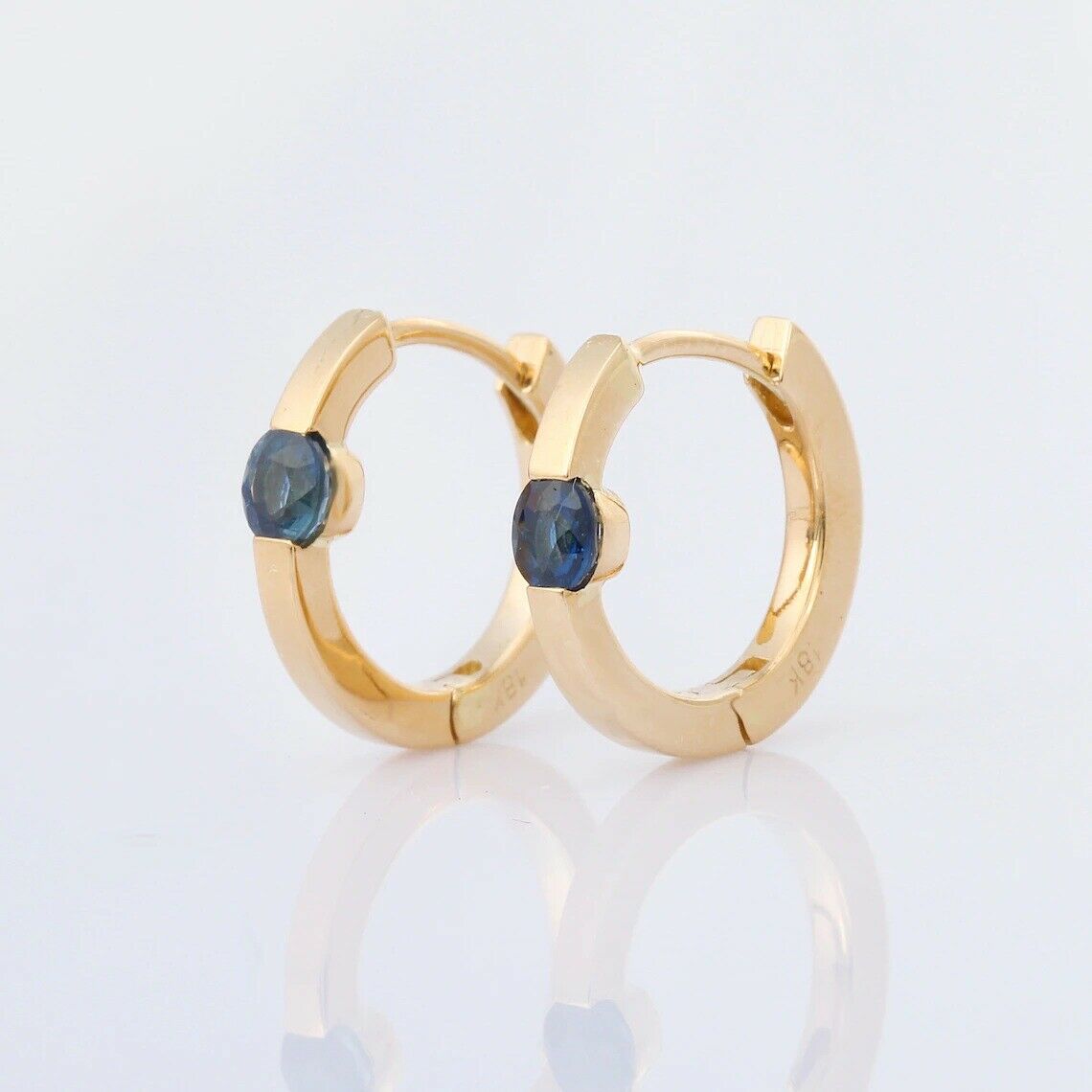 1ct Hoop Earrings Round Cut Blue Sapphire Solitaire 14k Yellow Gold Finish