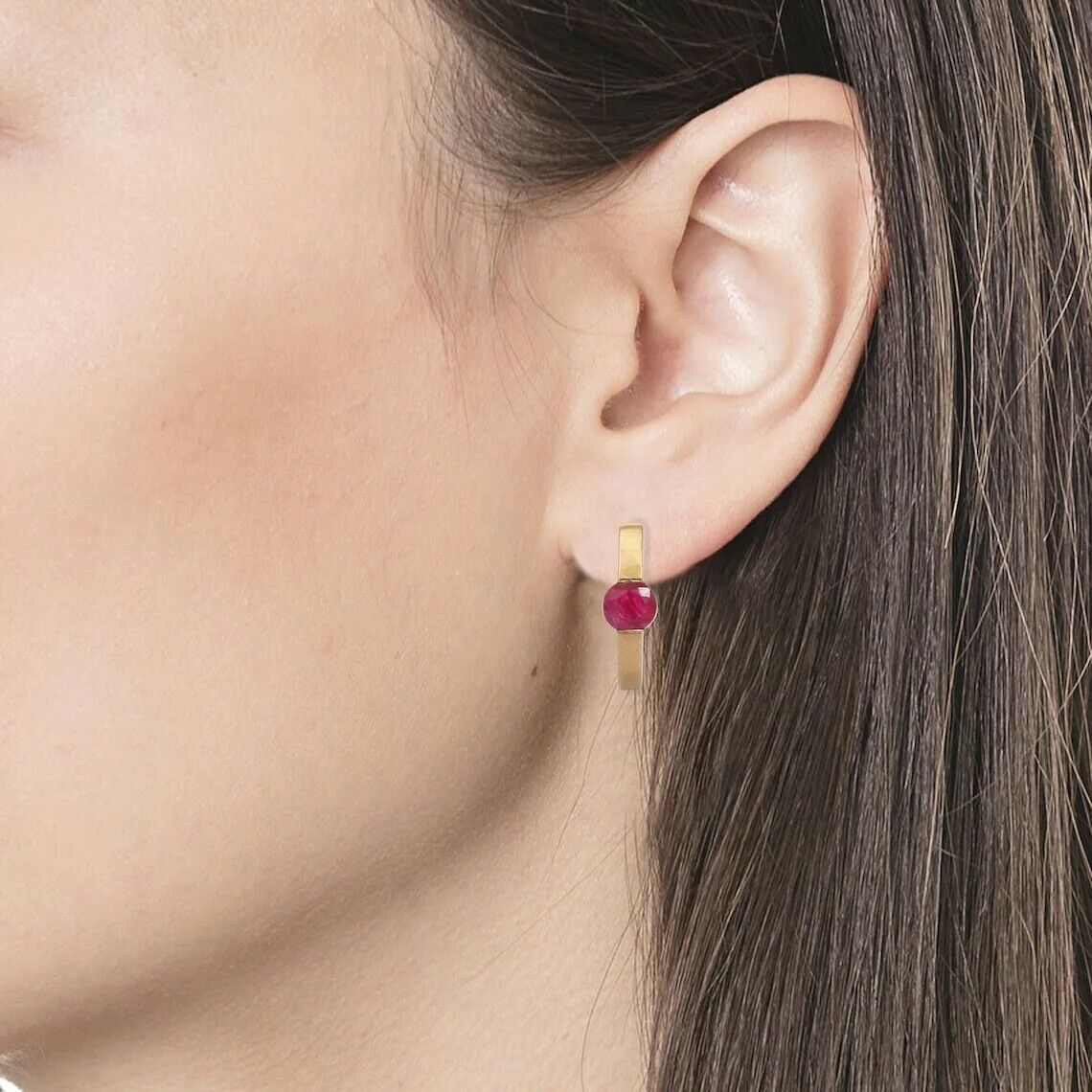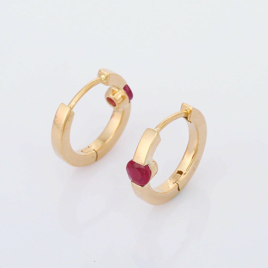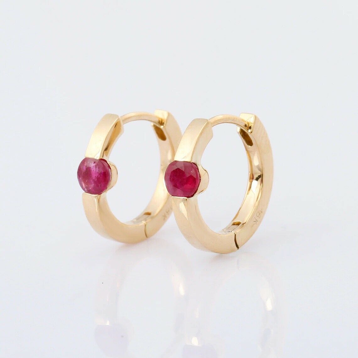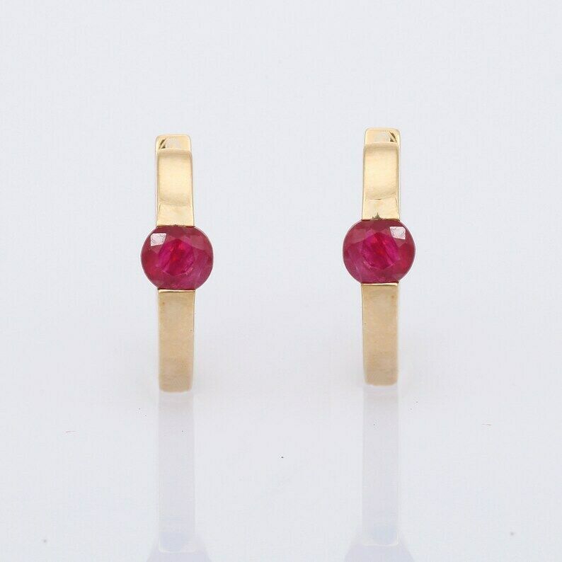 1ct Hoop Earrings Round Cut Pink Ruby Solitaire 14k Yellow Gold Finish
