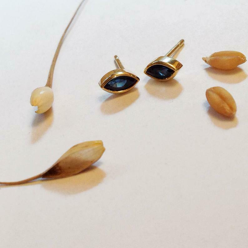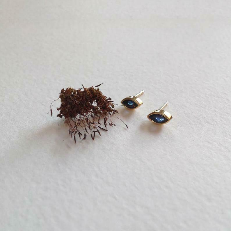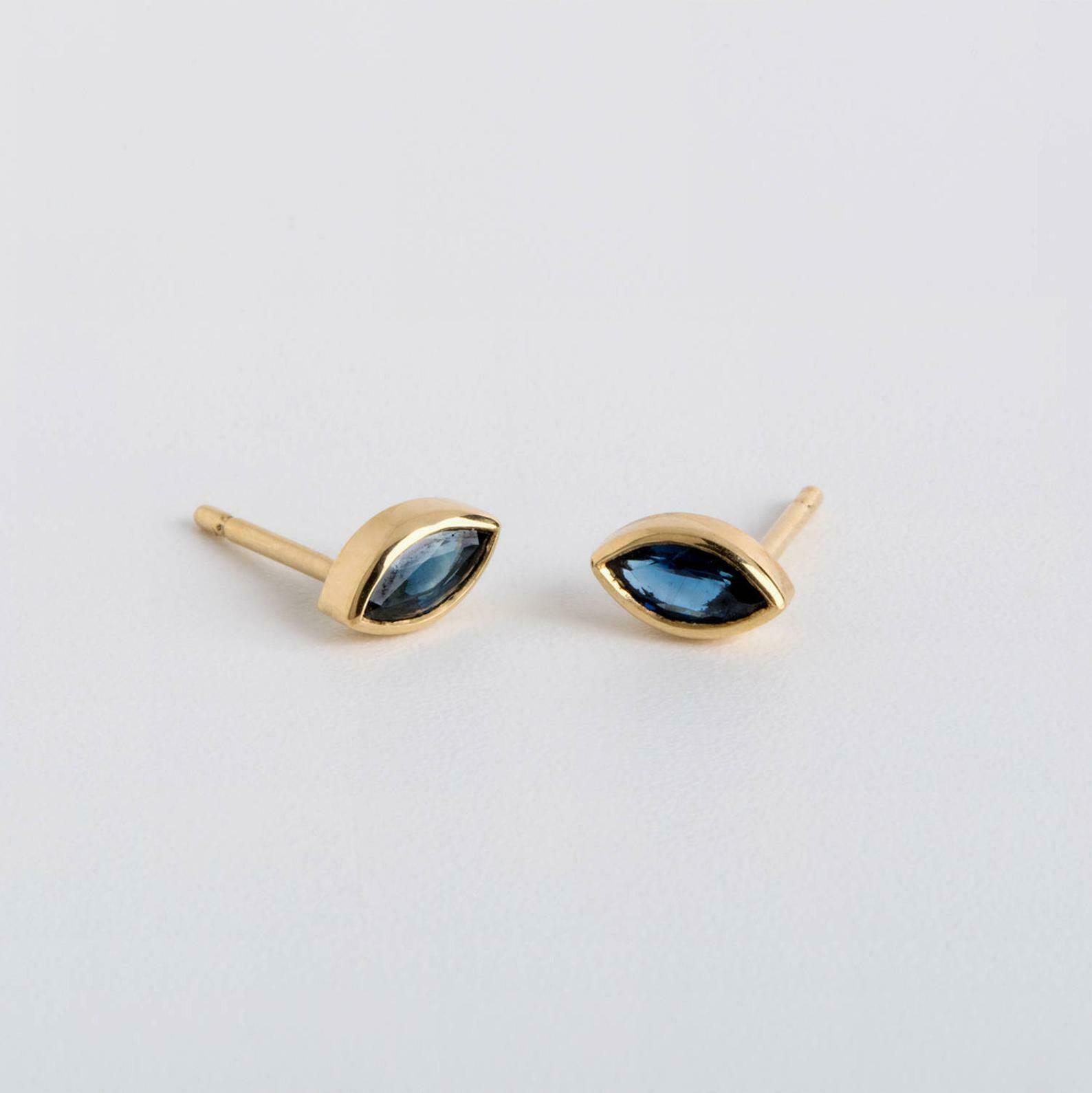 1ct Marquise Cut Blue Sapphire Solitaire Bezel Stud Earrings 14k Yellow Gold Over