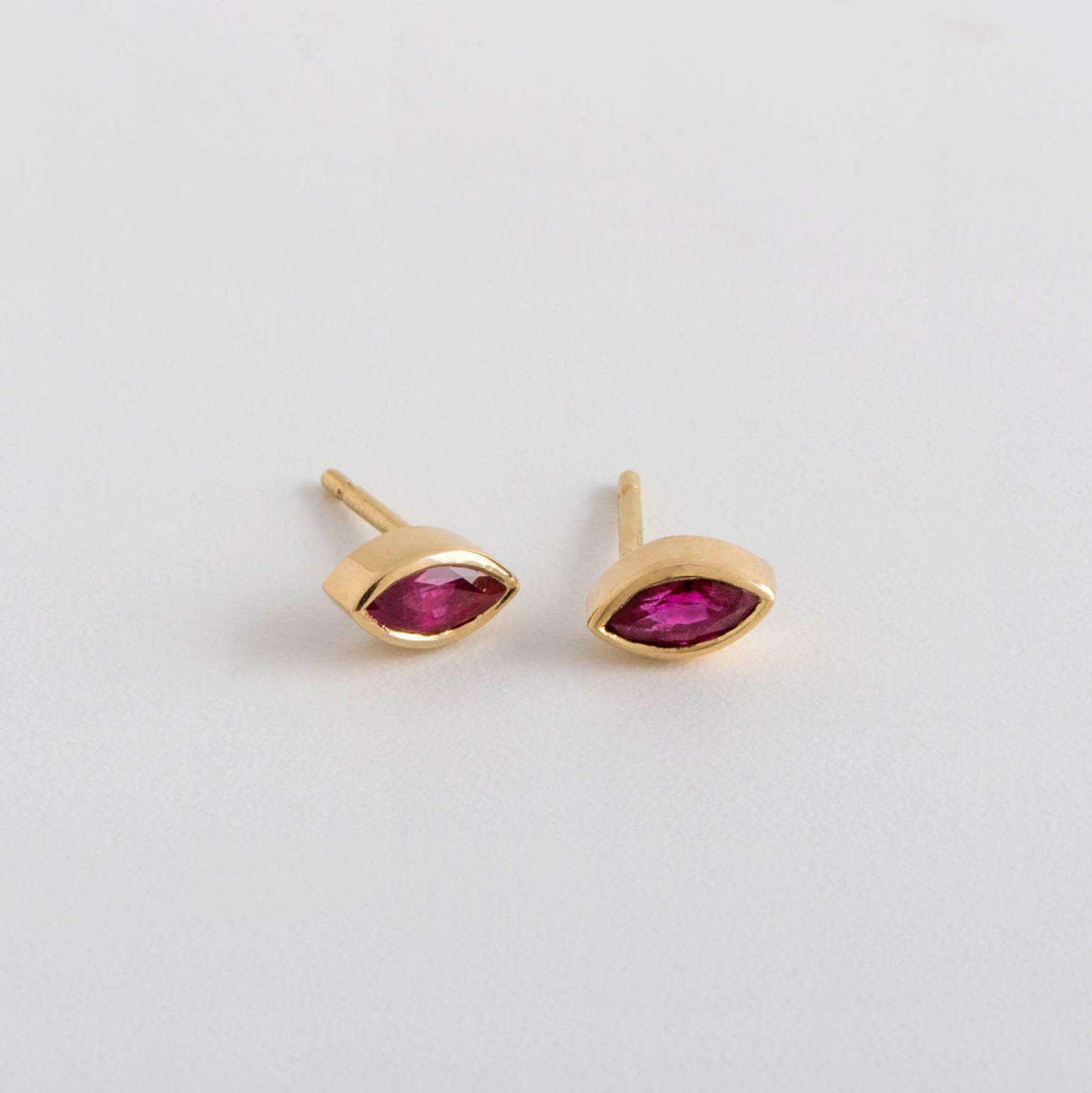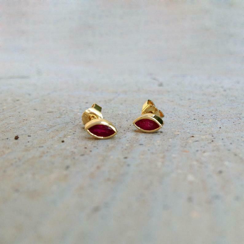 1ct Marquise Cut Pink Ruby Solitaire Bezel Stud Earrings 14k Yellow Gold Finish