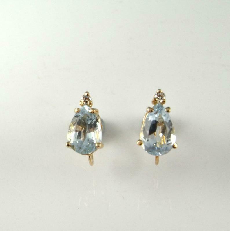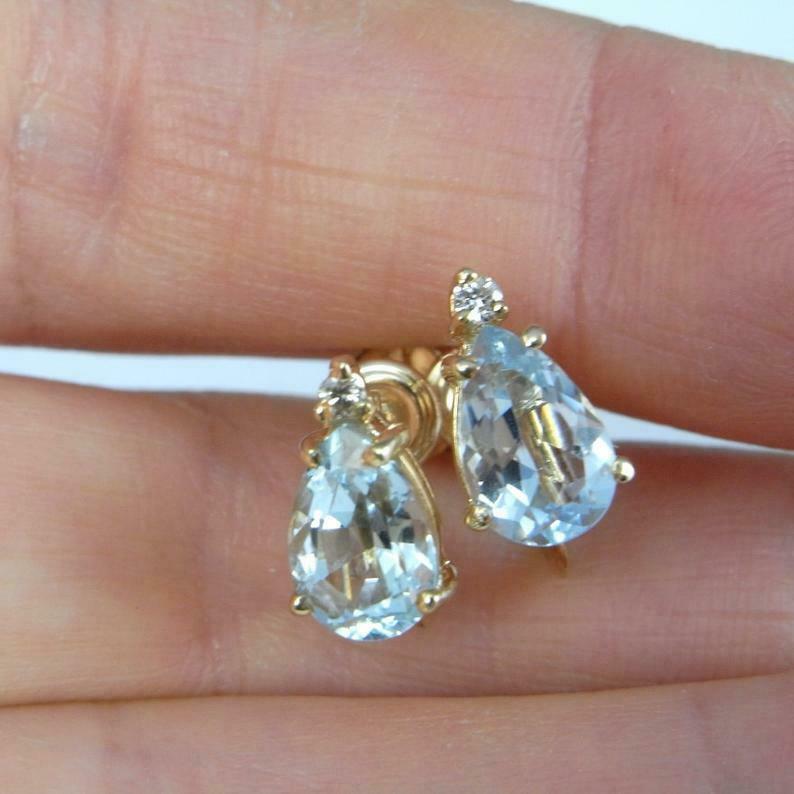 1ct Pear Cut Blue Aquamarine Diamond Teardrop Stud Earrings 14k Yellow Gold Over