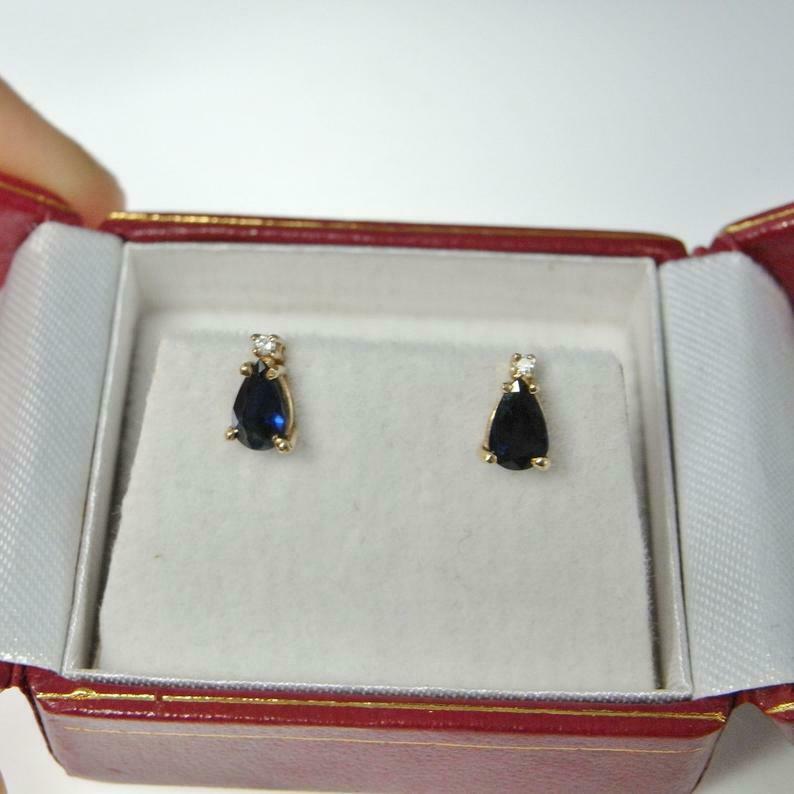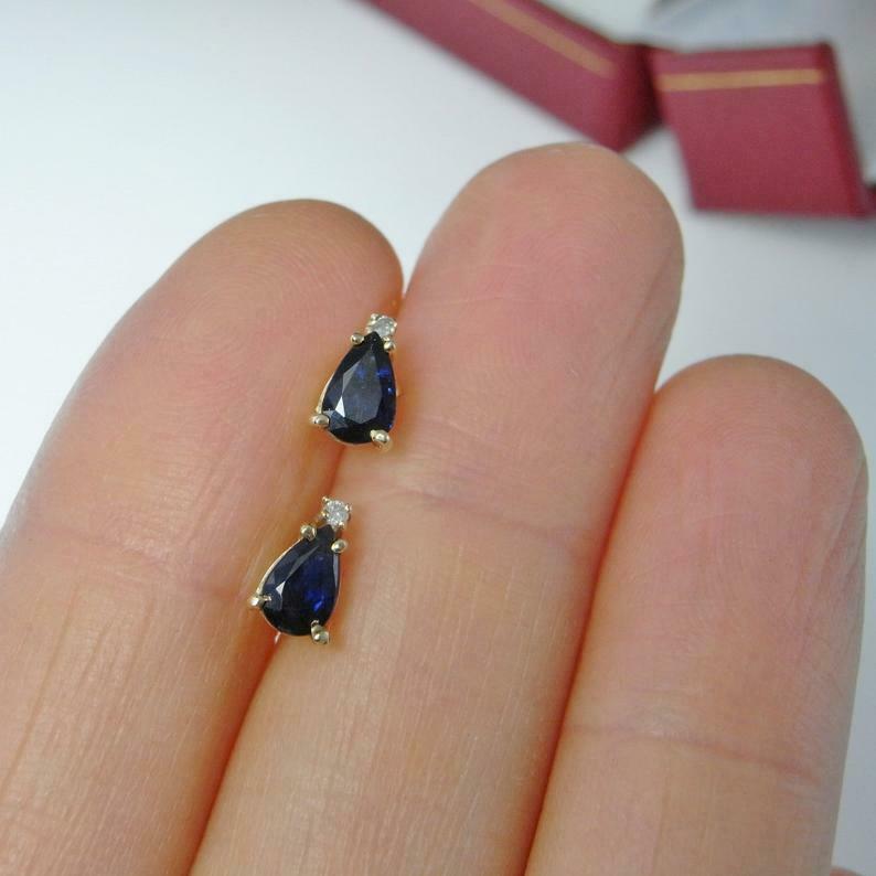 1ct Pear Cut Blue Sapphire Diamond Teardrop Stud Earrings 14k Yellow Gold Finish