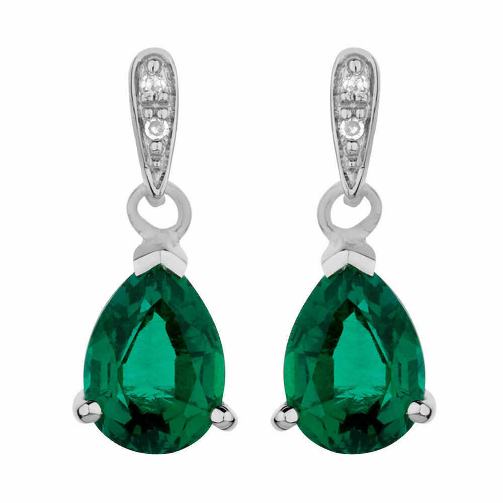 1ct Pear Cut Green Emerald Diamond Tear Drop Earrings 14k White Gold Finish