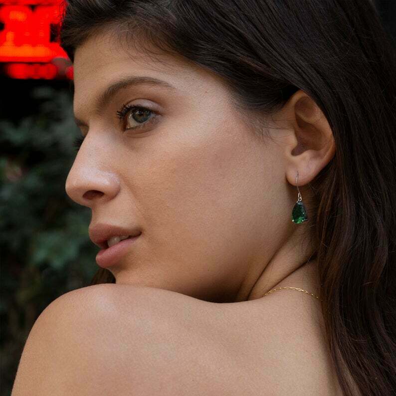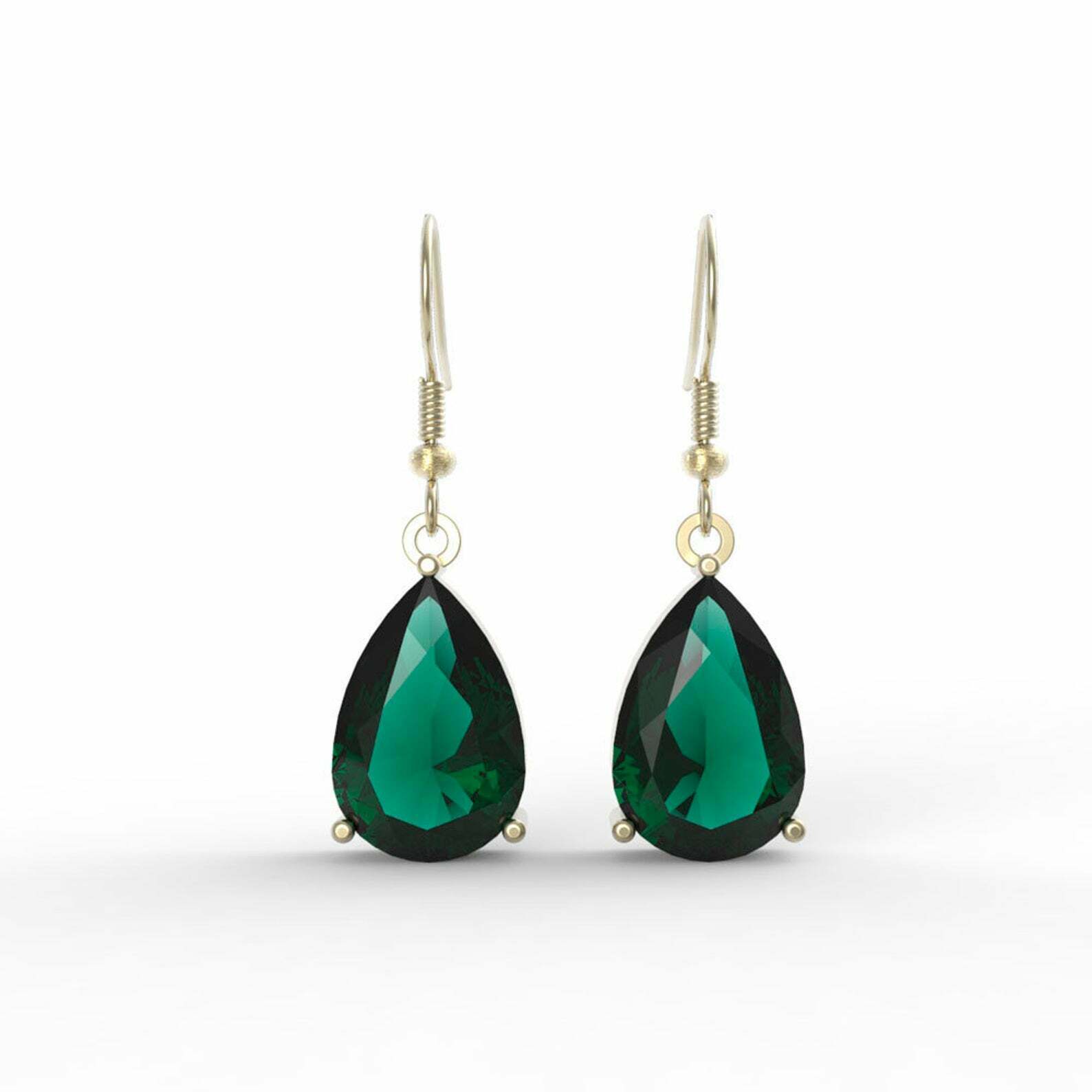1ct Pear Cut Green Emerald Fish Hook Drop Earrings 14k Yellow Gold Finish