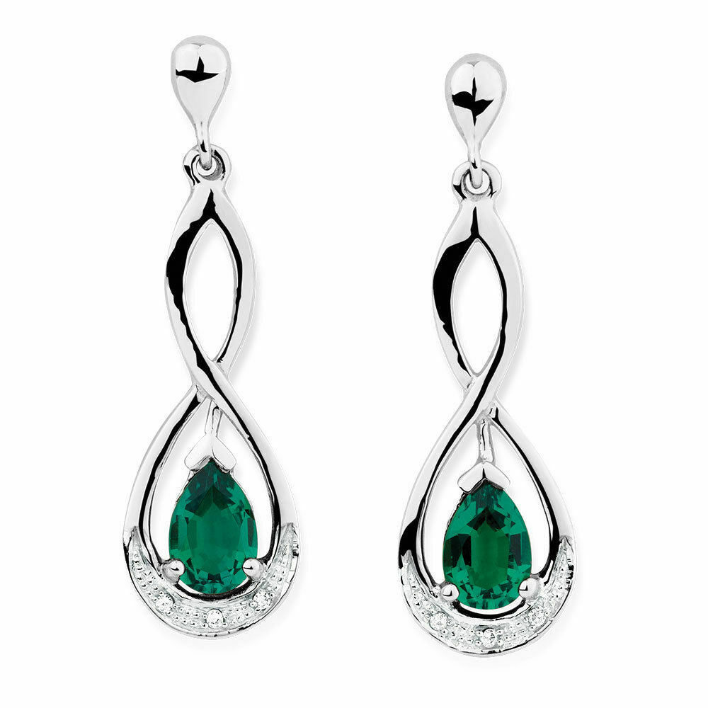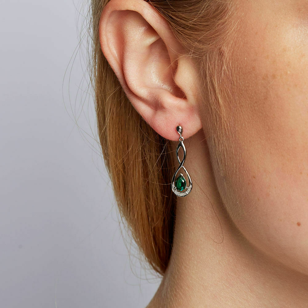 1ct Pear Cut Green Emerald Infinity Drop Women Earrings 14k White Gold Finish