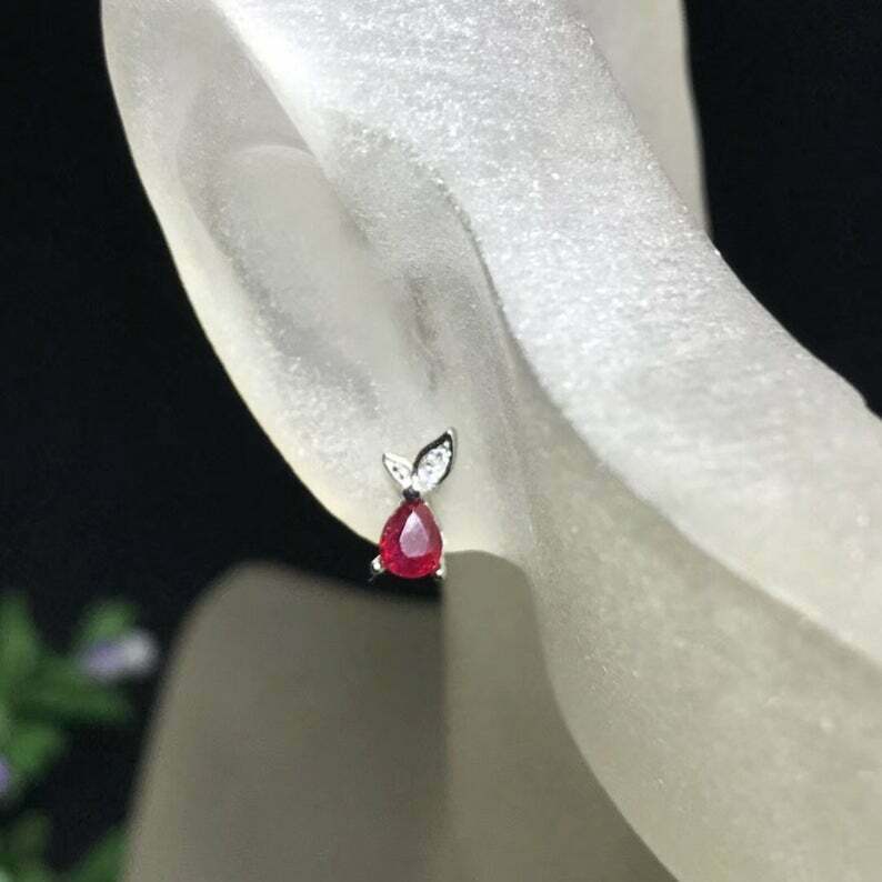 1ct Pear Cut Pink Ruby Leaf Petal Minimalist Stud Earrings 14k White Gold Finish