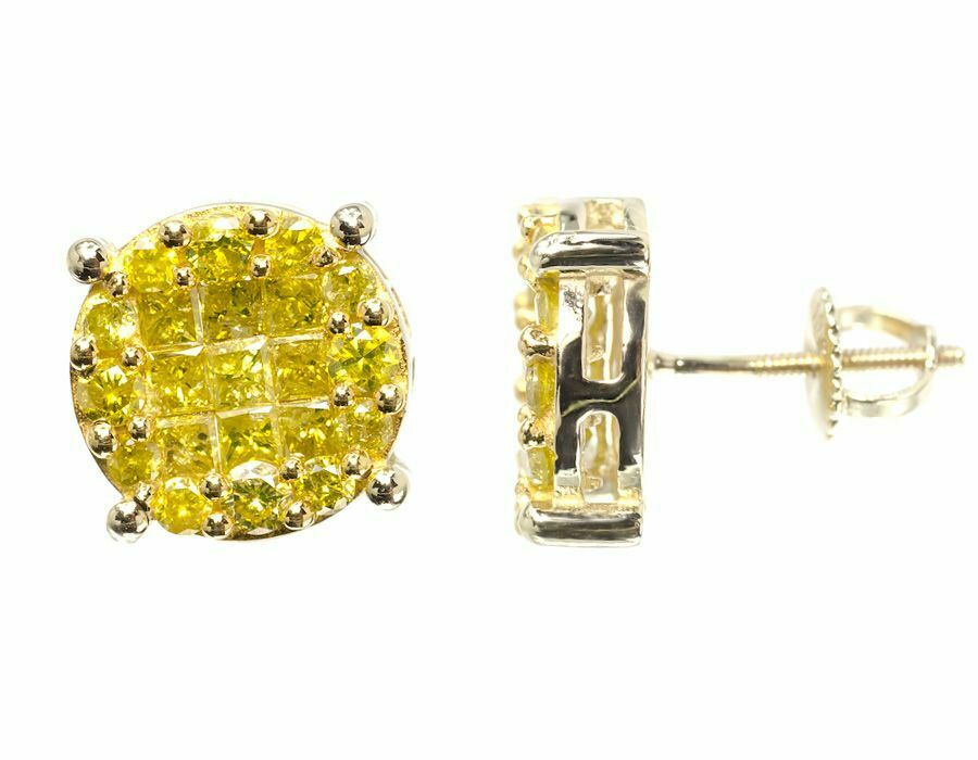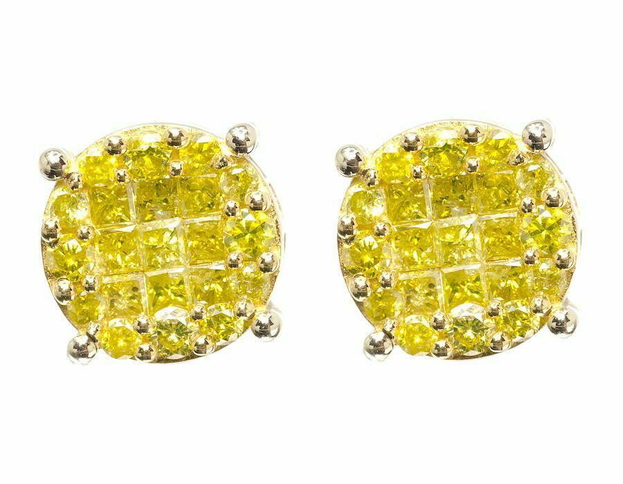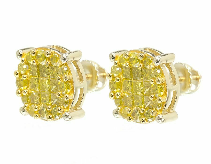 1ct Princess Cut Yellow Sapphire Cluster Stud Earrings 14k Yellow Gold Finish