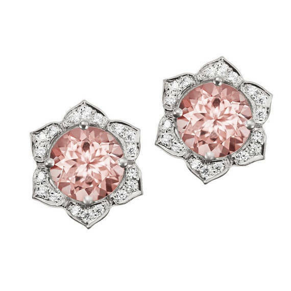 1ct Round Cut Champagne Morganite Flower Stud Earring Women 14k Gold Finish
