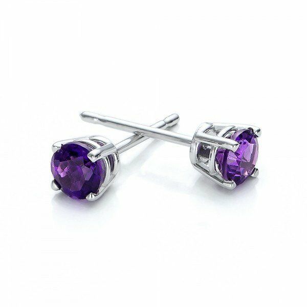 1ct Round Cut Purple Amethyst Push Back Women Stud Earrings 14k WhiteGold Finish
