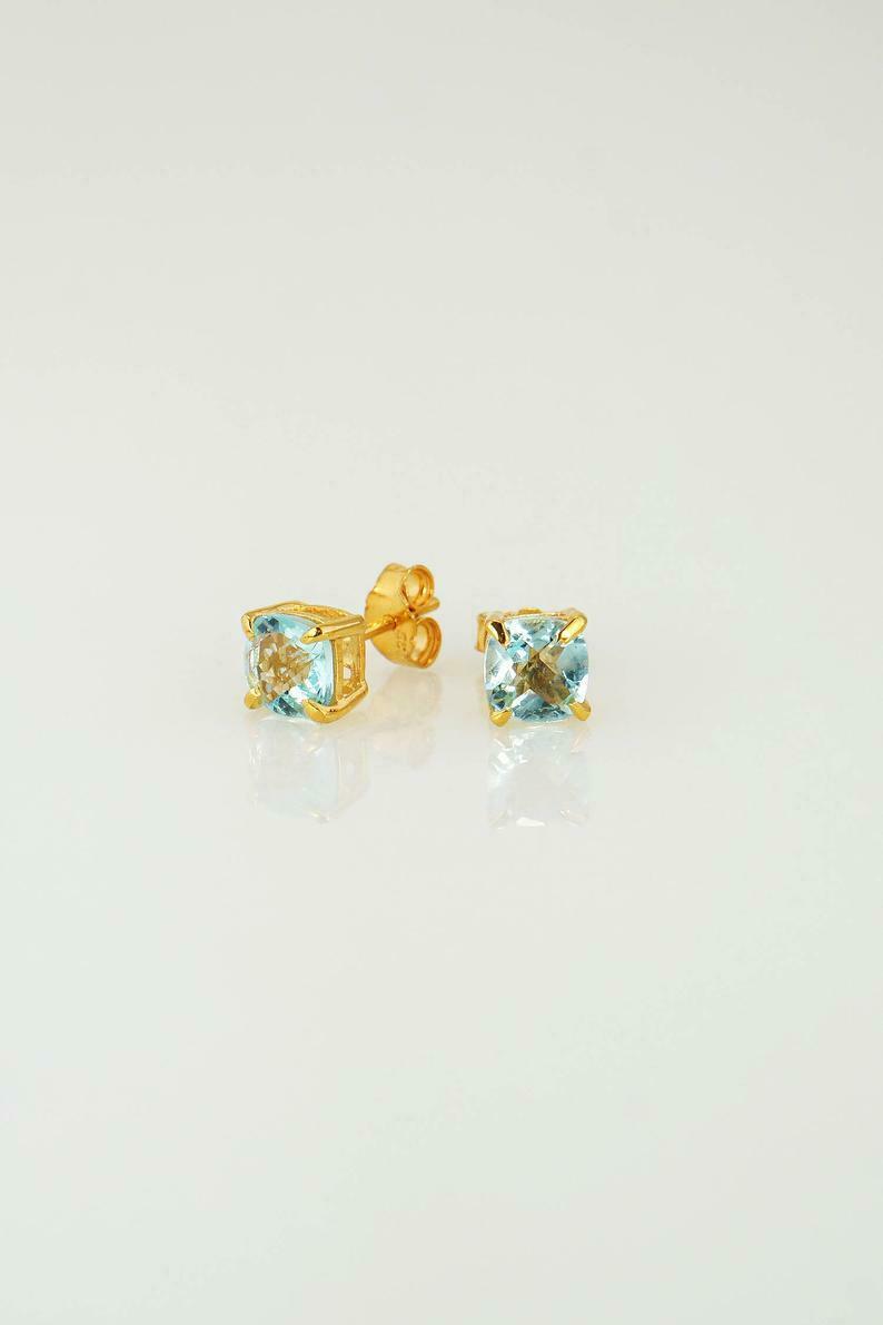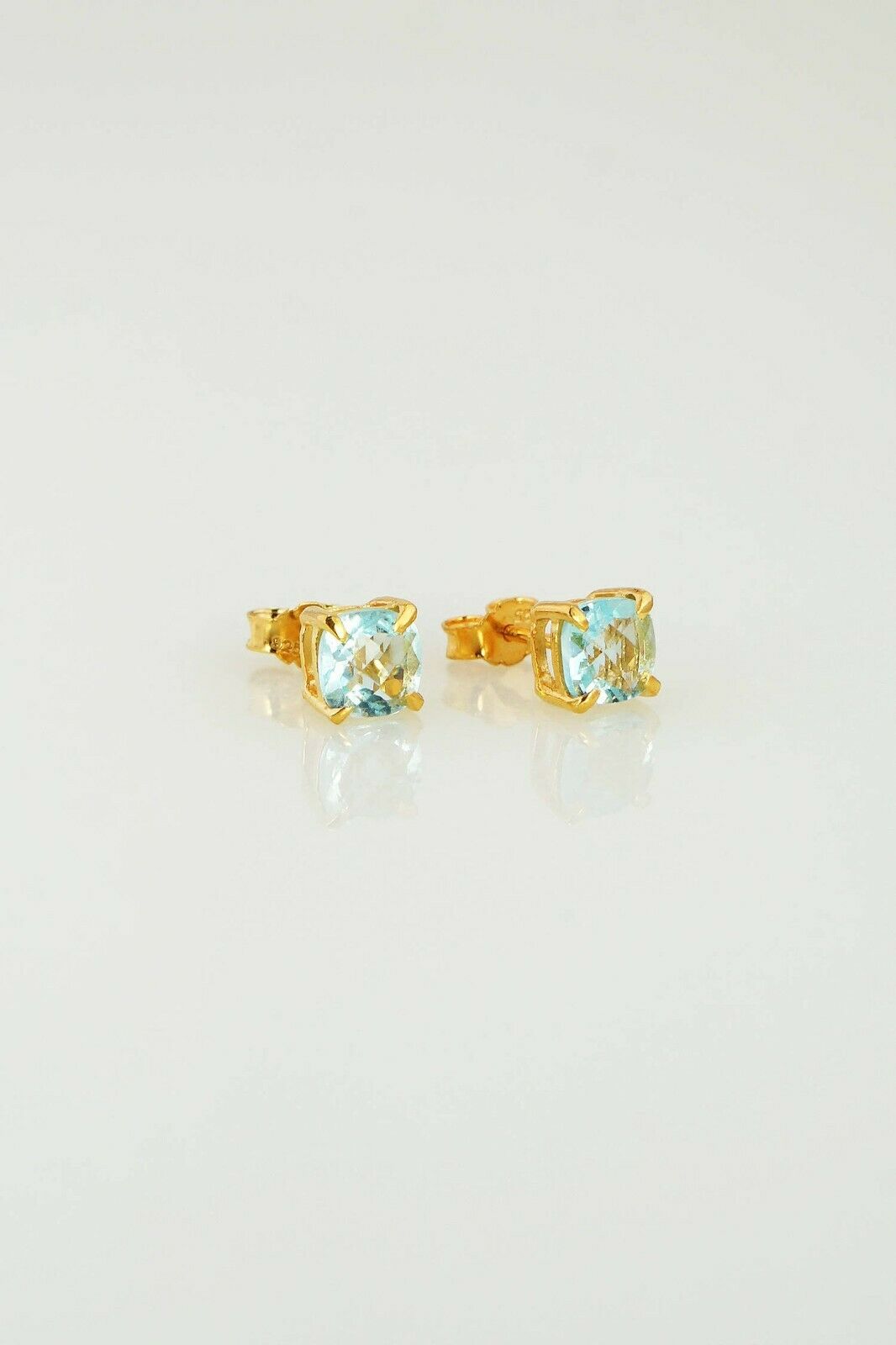 1ct Stud Earrings Cushion Cut Blue Aquamarine Solitaire 14k Yellow Gold Finish