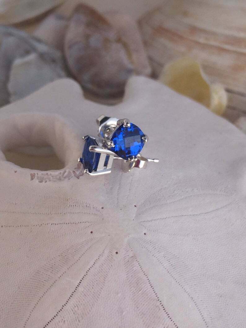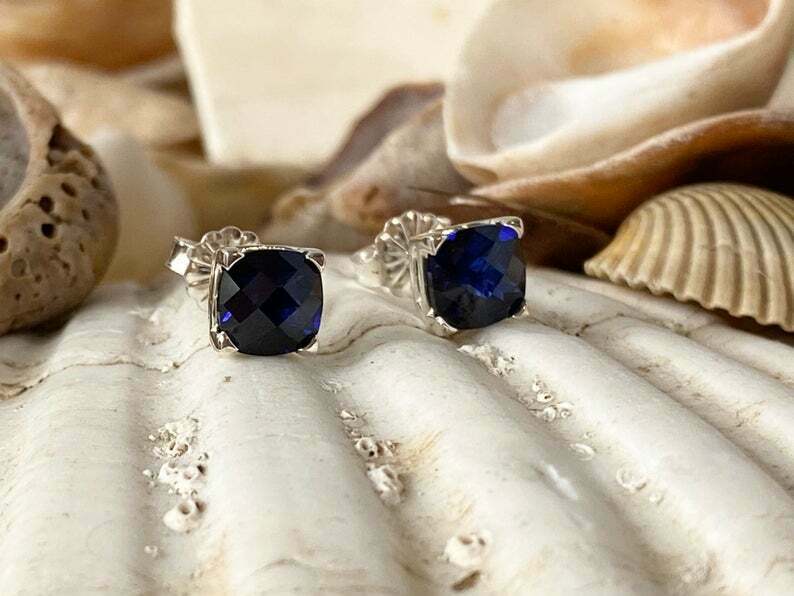 1ct Stud Earrings Cushion Cut Blue Sapphire Solitaire Women 14k White Gold Over