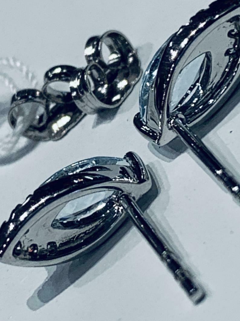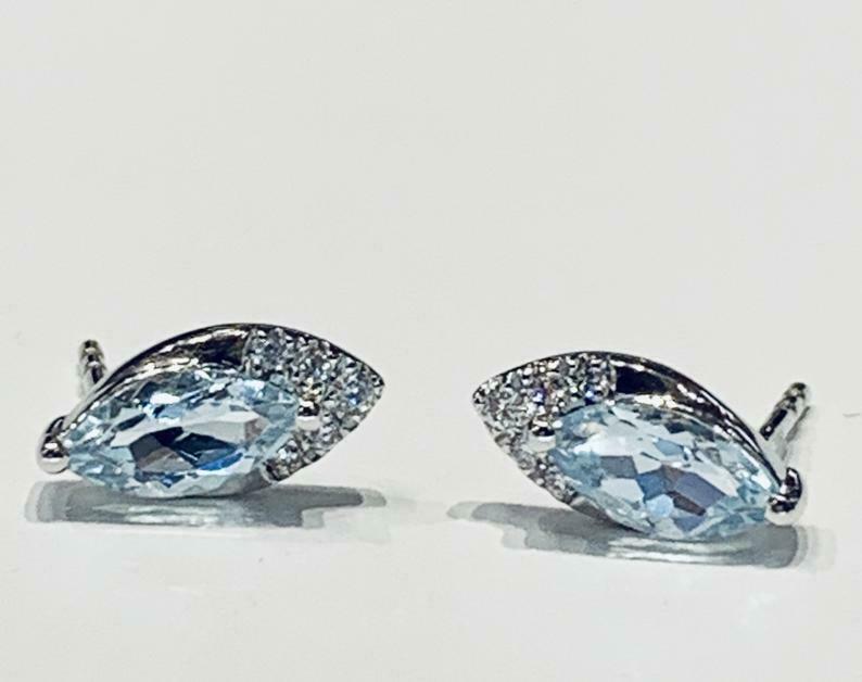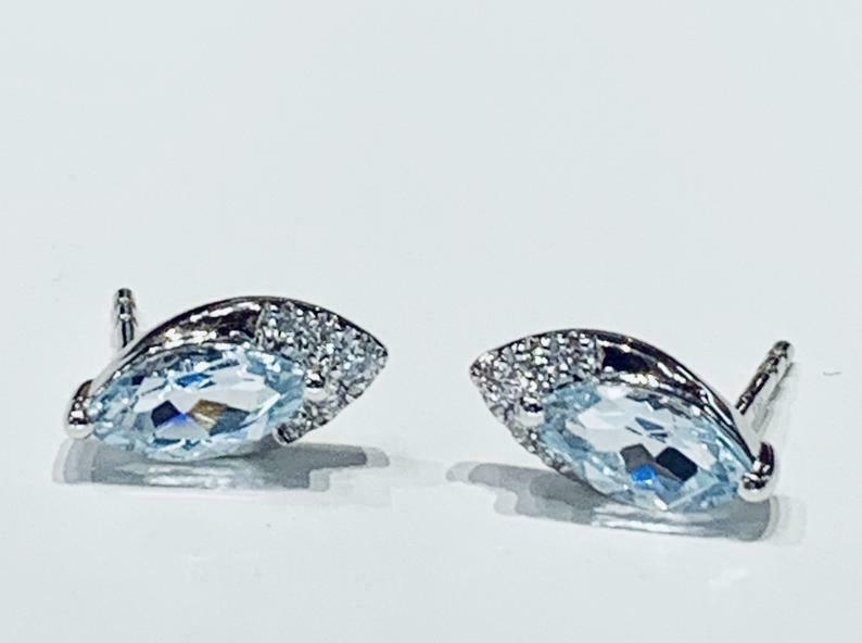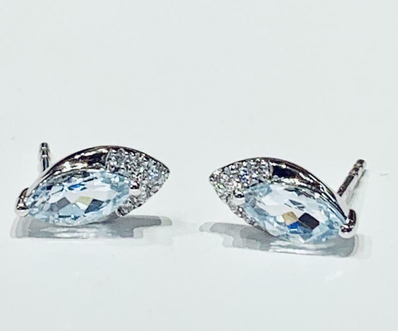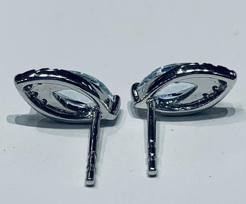 1ct Stud Earrings Marquise Cut Aquamarine Diamond Petite 14k White Gold Finish