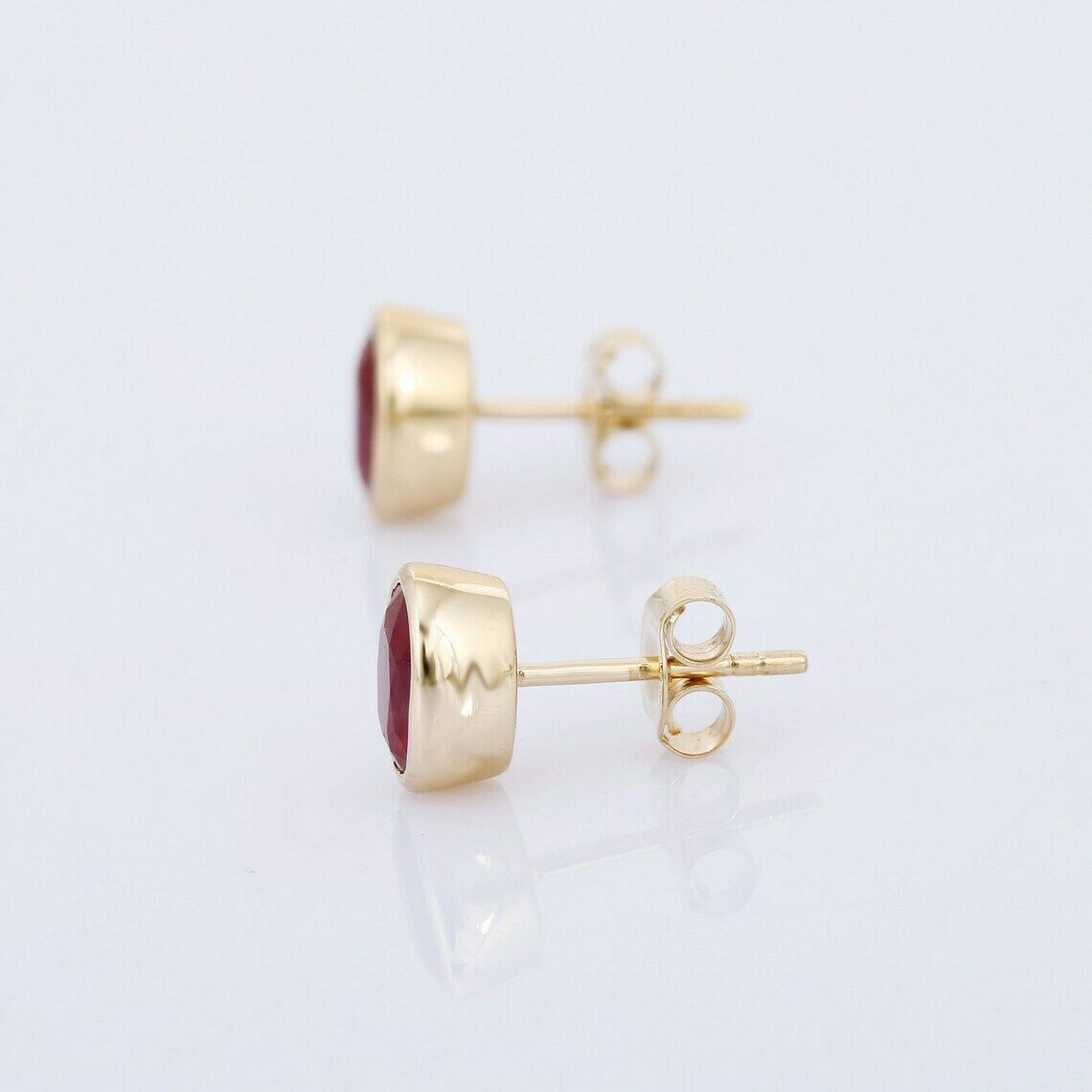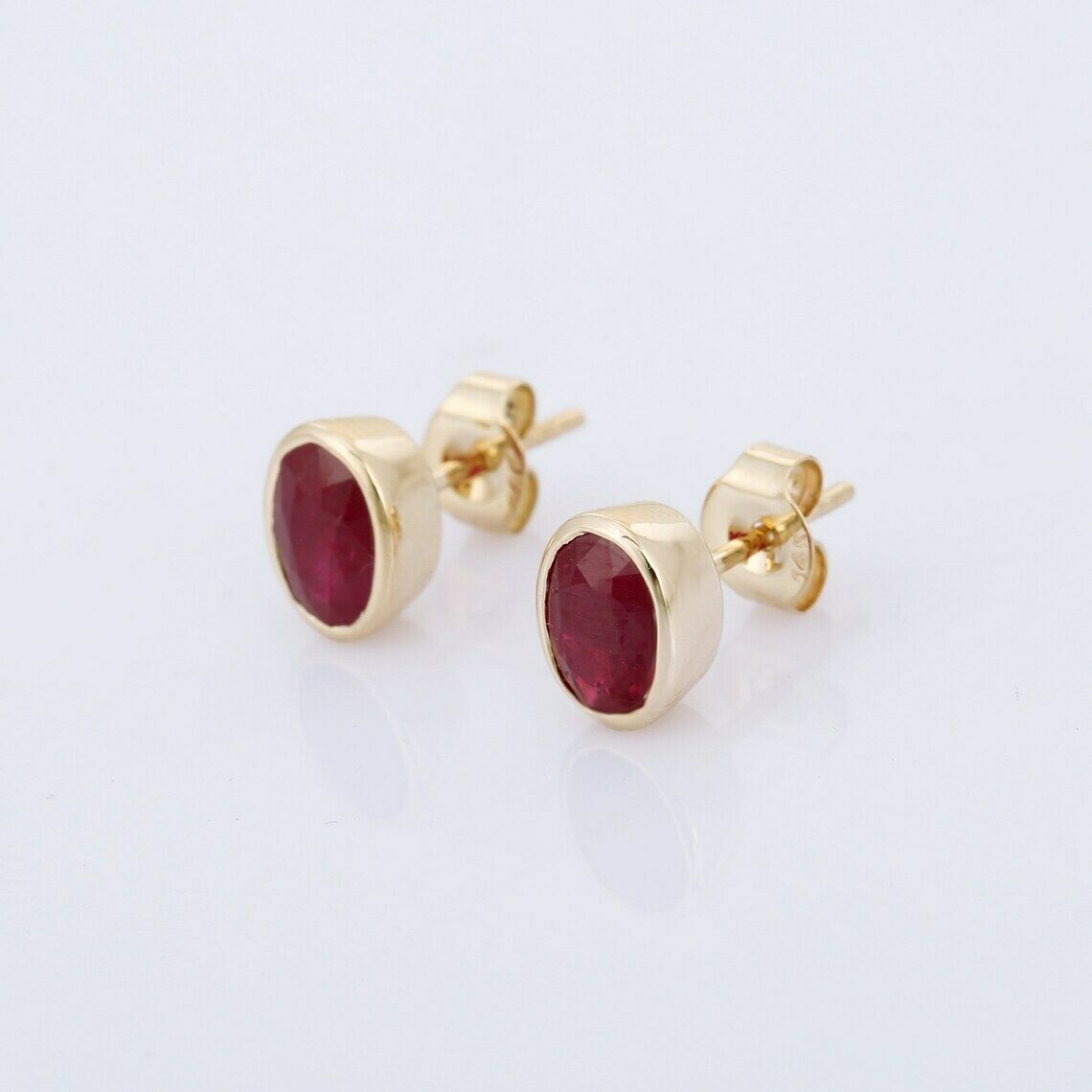 1ct Stud Earrings Oval Cut Pink Ruby Bezel Set Solitaire 14k Yellow Gold Finish