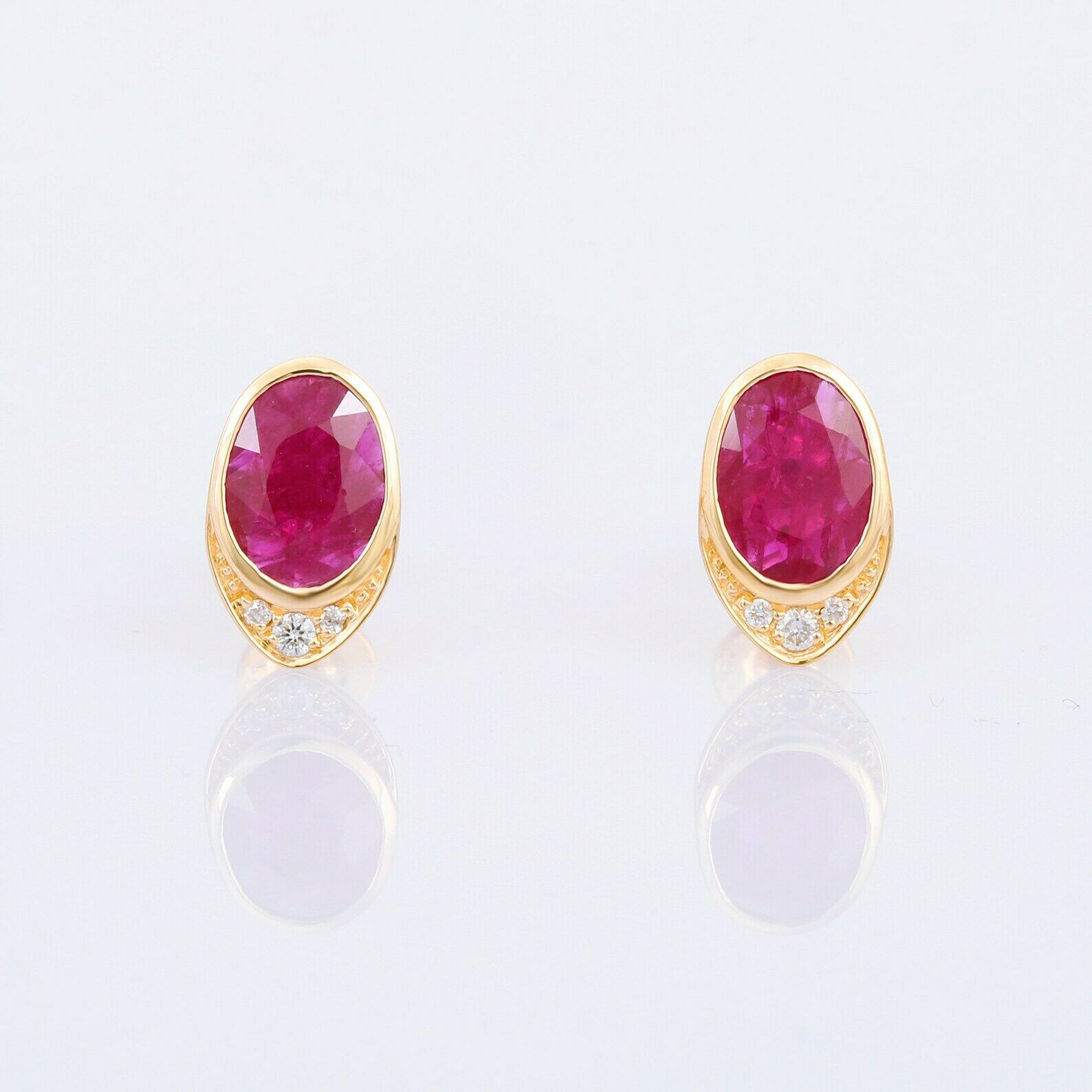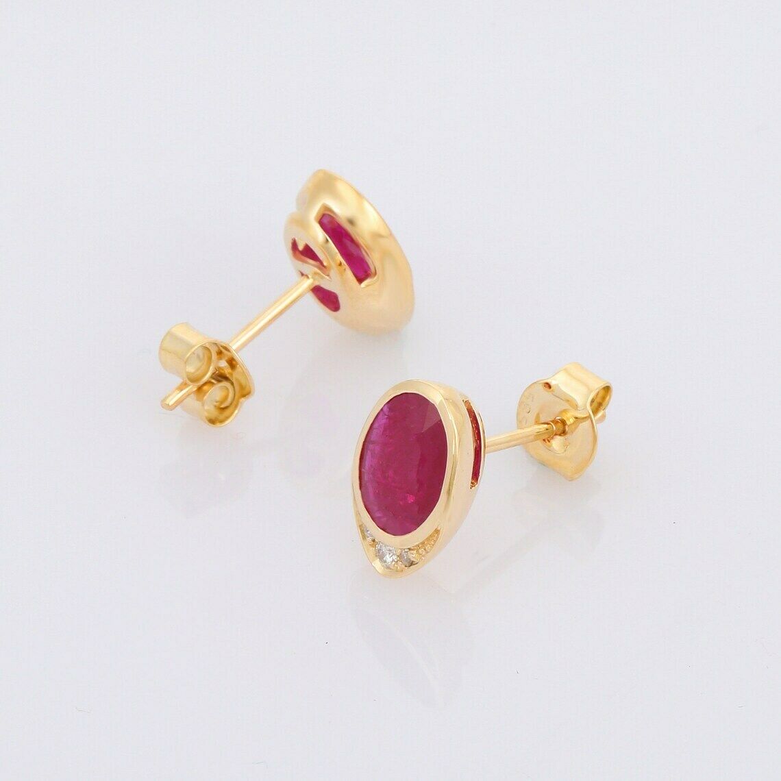 1ct Stud Earrings Oval Cut Pink Ruby Diamond Petite 14k Yellow Gold Finish