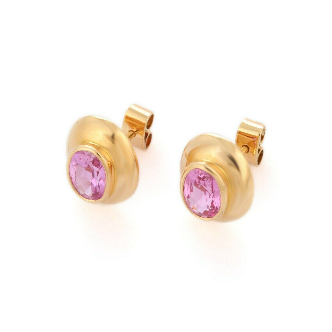 1ct Stud Earrings Oval Cut Pink Sapphire Solitaire 14k Yellow Gold Finish