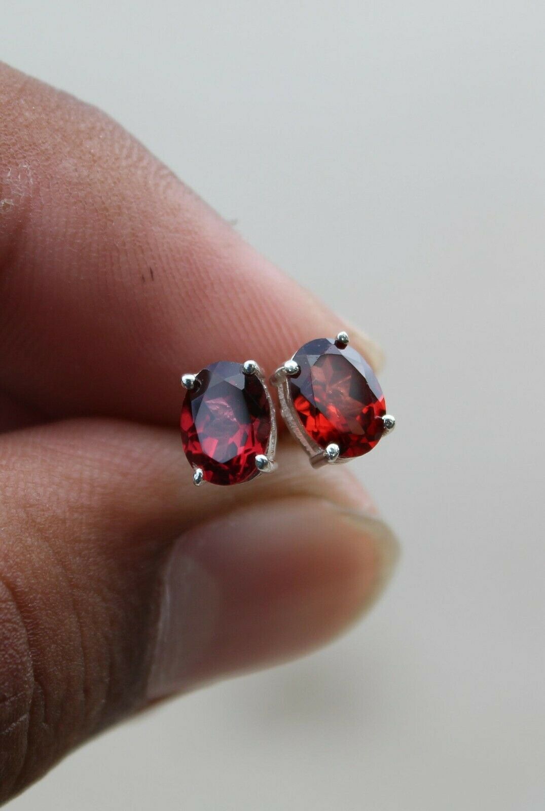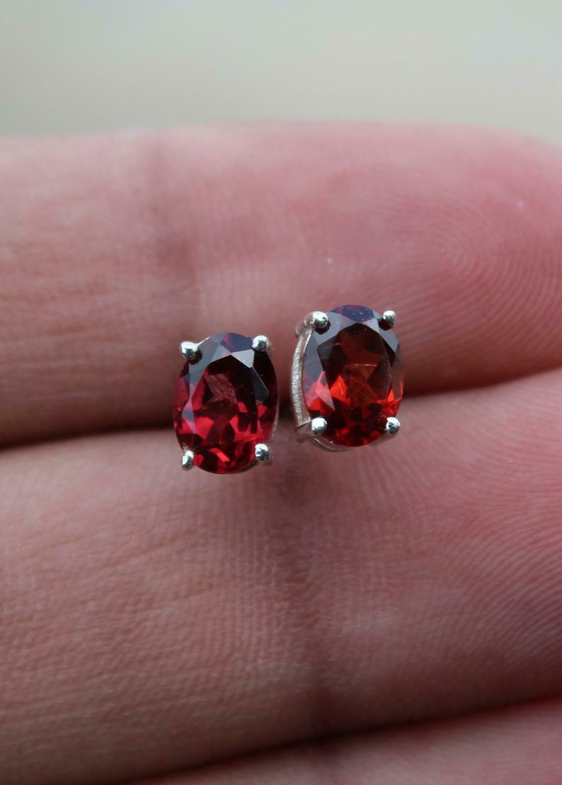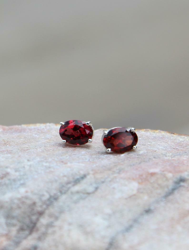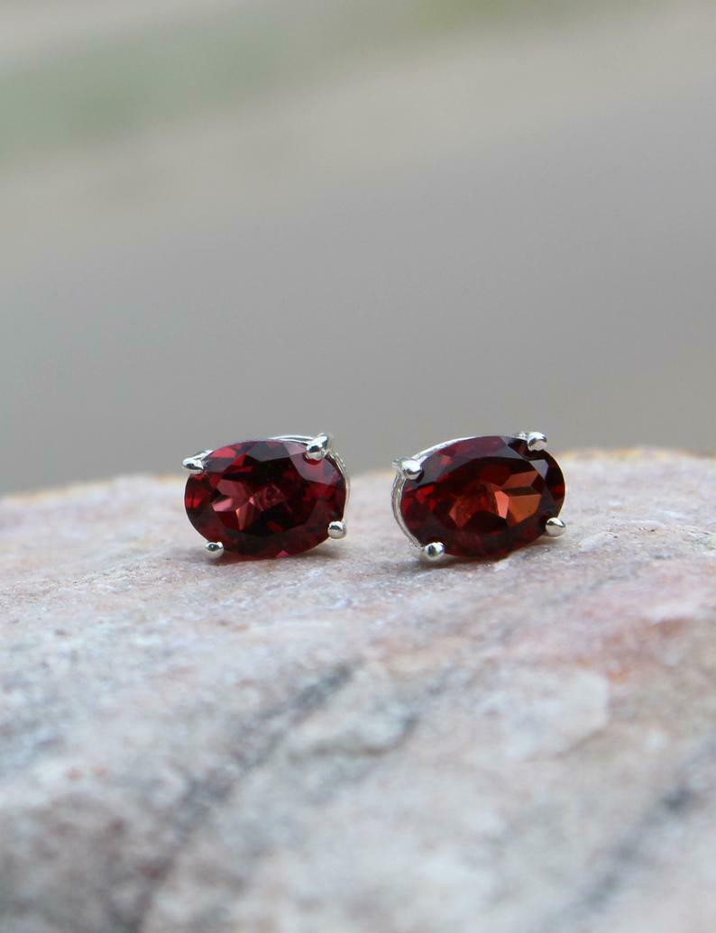1ct Stud Earrings Oval Cut Red Garnet Solitaire Design 14k White Gold Finish