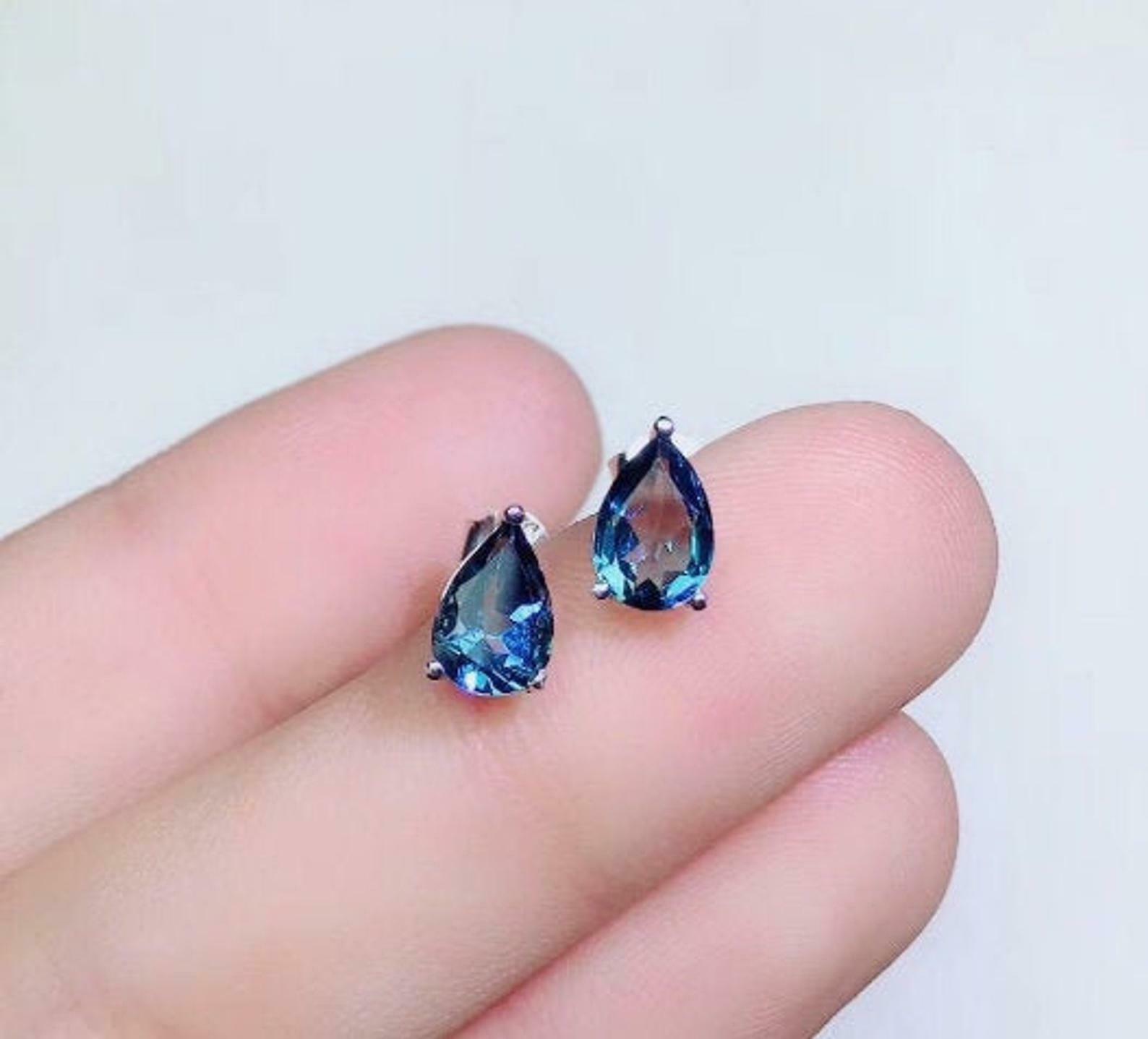 1ct Stud Earrings Pear Cut London Blue Topaz Solitaire Women 14k White Gold Over