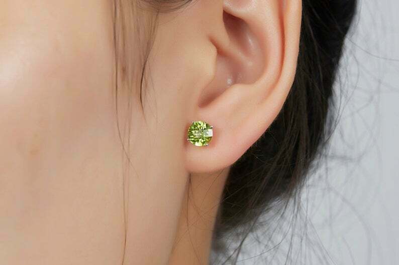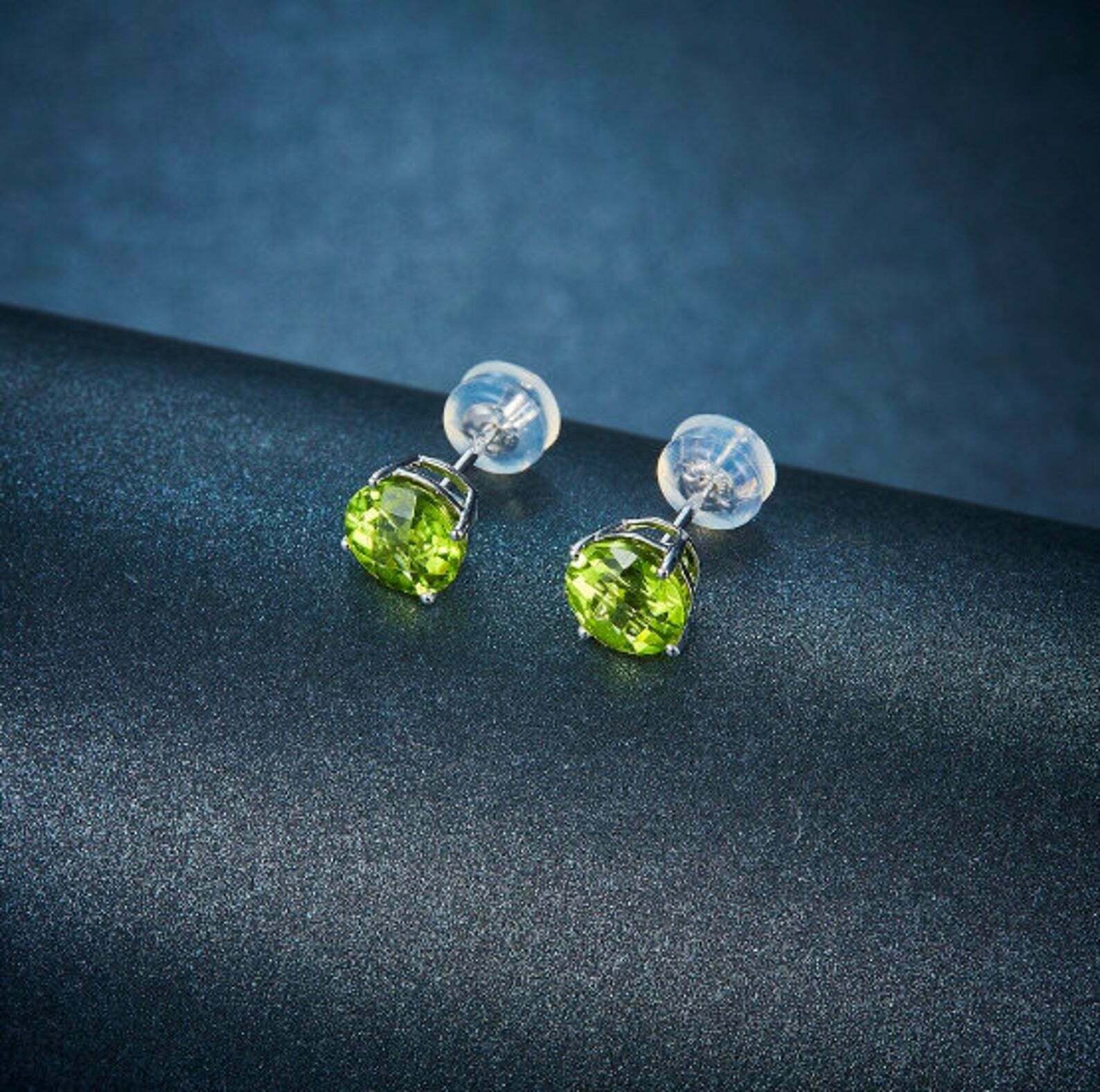 1ct Stud Earrings Round Cut Green Peridot Solitaire Women 14k White Gold Finish