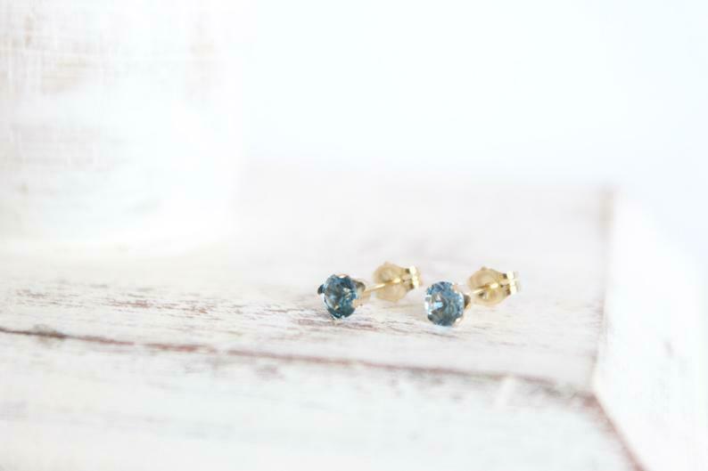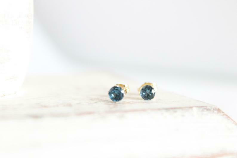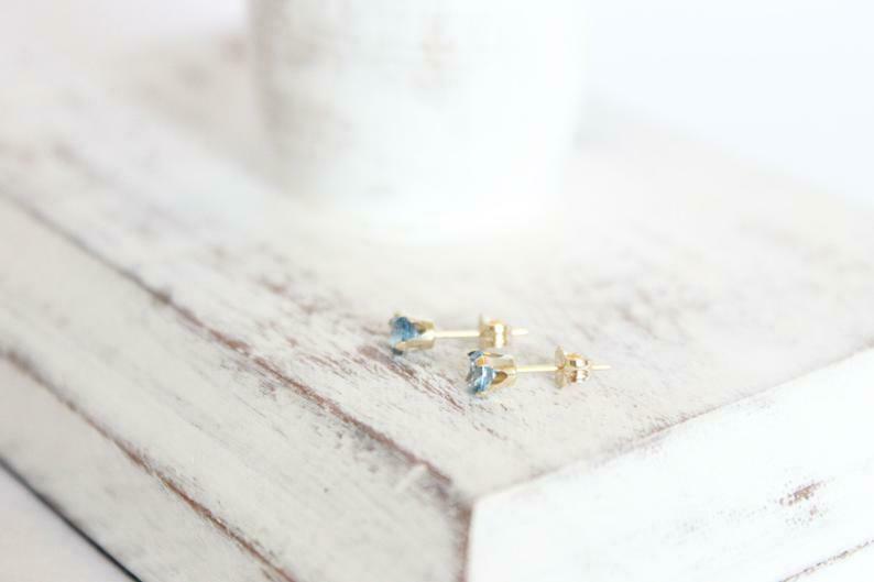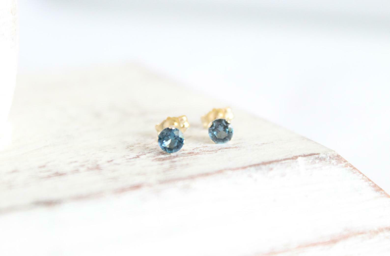 1ct Stud Earrings Round Cut London Blue Topaz Solitaire 14k Yellow Gold Finish