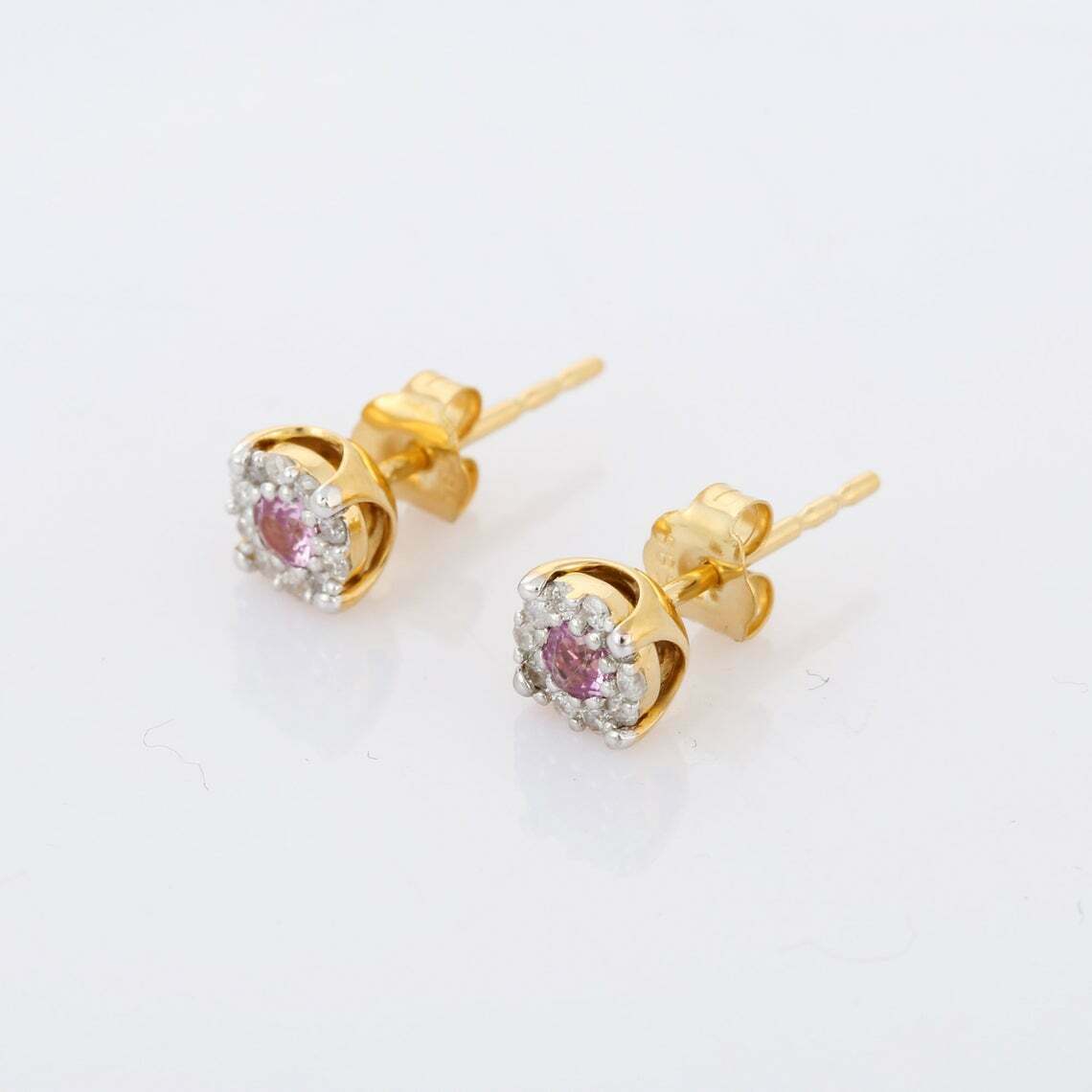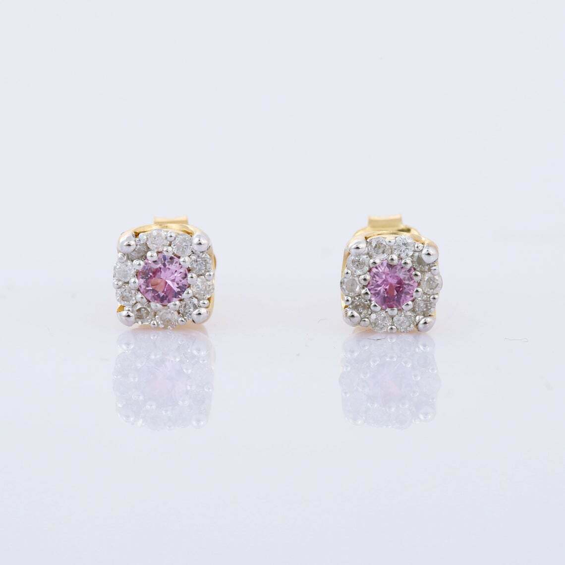 1ct Stud Earrings Round Cut Pink Sapphire Halo Design 14k Yellow Gold Finish