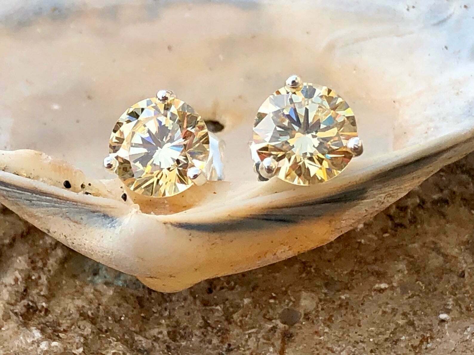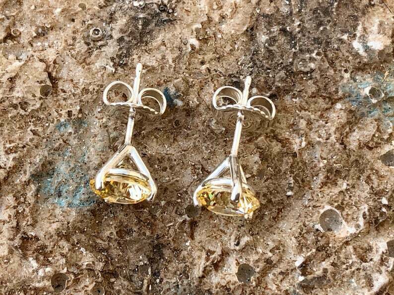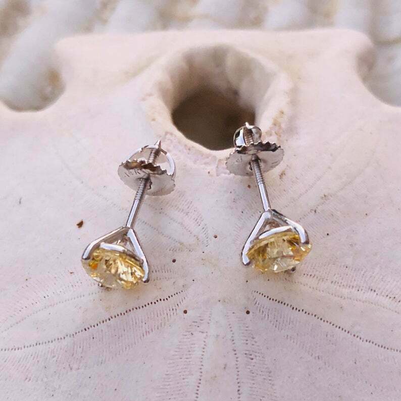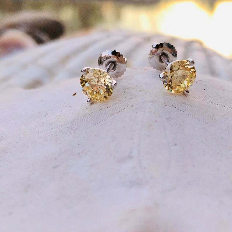 1ct Stud Earrings Round Cut Yellow Sapphire Solitaire 14k White Gold Finish