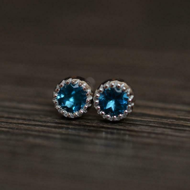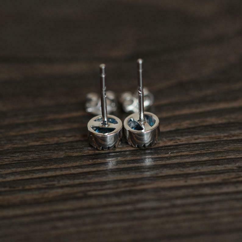 1ct Stud Earrings Round Cut London Blue Topaz Solitaire Design 14k White Gold Finish
