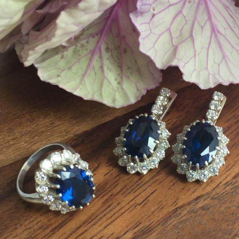 2.1ct Drop Earrings Oval Cut Blue Sapphire Diamond Halo 14k White Gold Finish