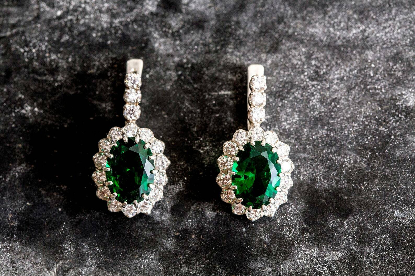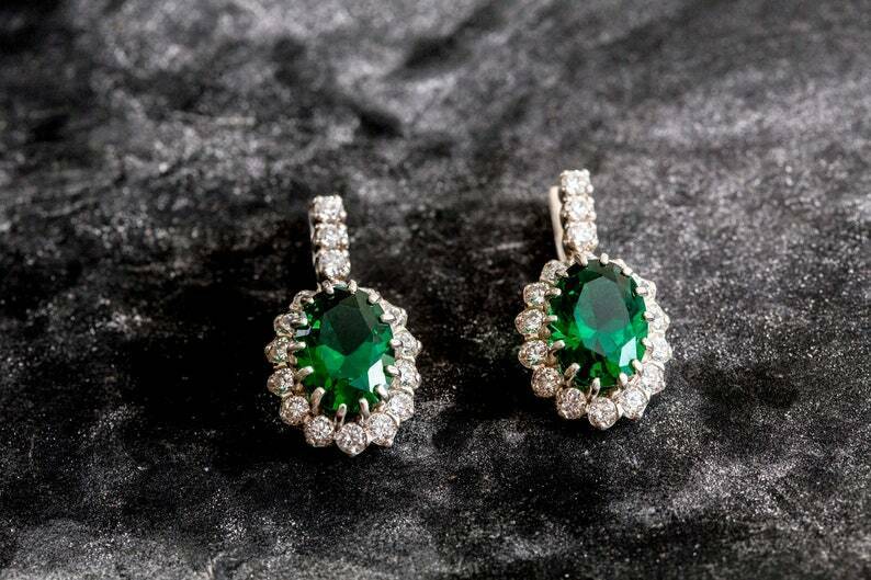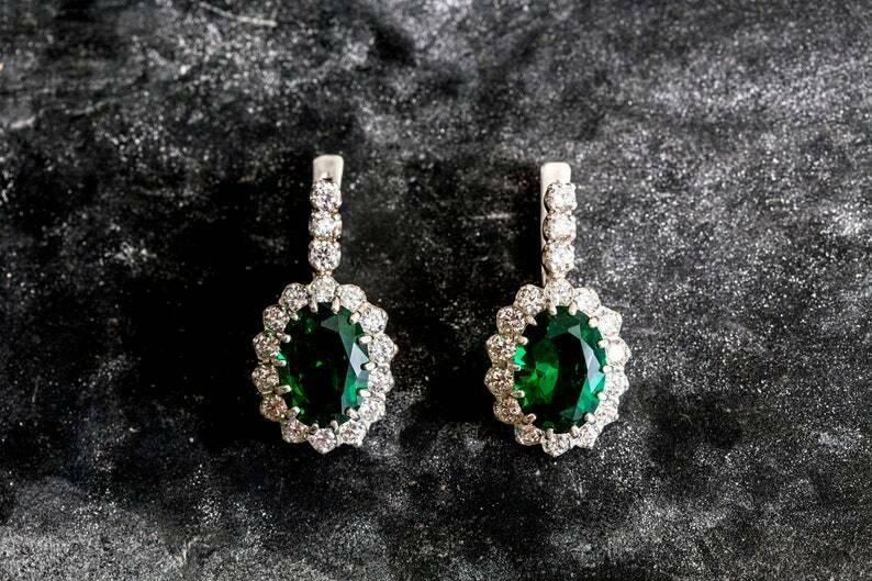 2.1ct Drop Earrings Oval Cut Green Emerald Diamond Halo 14k White Gold Finish