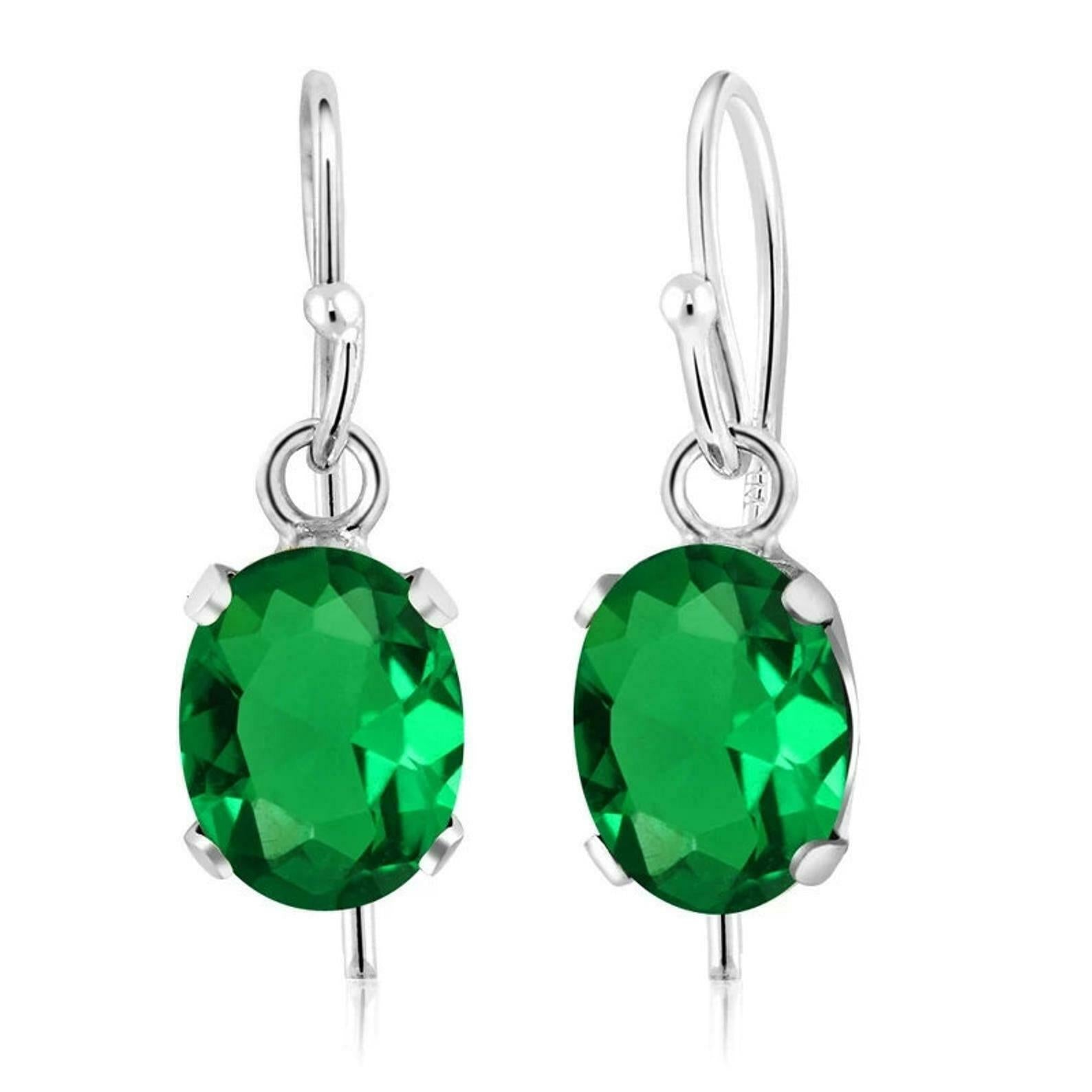 2.1ct Drop Earrings Oval Cut Green Emerald Solitaire Women 14k White Gold Finish