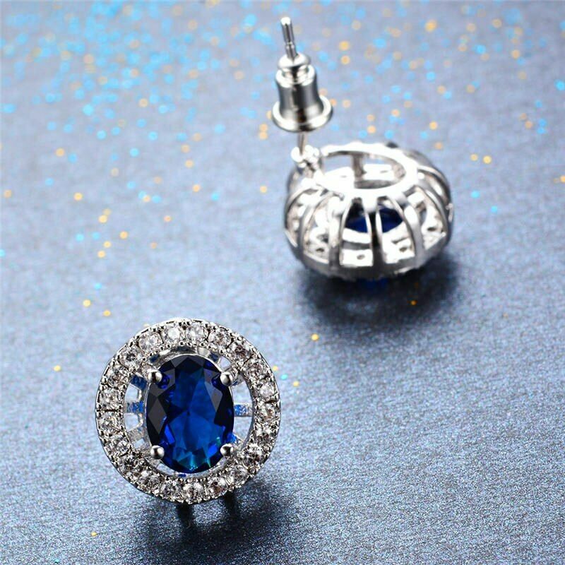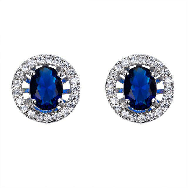 2.1ct Oval Cut Blue Sapphire Halo Solitaire Stud Earrings 14k White Gold Finish