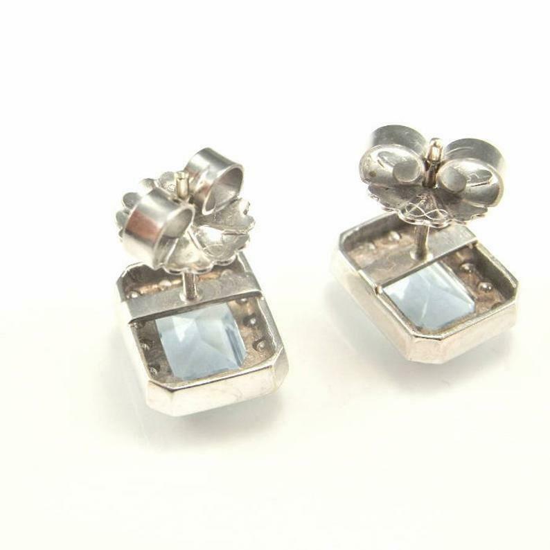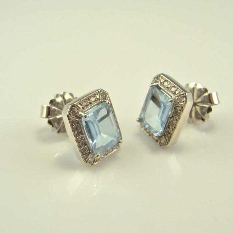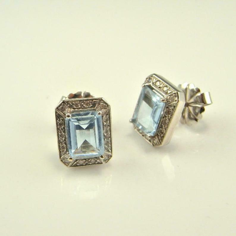 2.2ct Emerald Cut Blue Aquamarine Diamond Halo Stud Earrings 14k White Gold Over