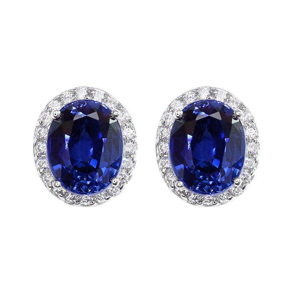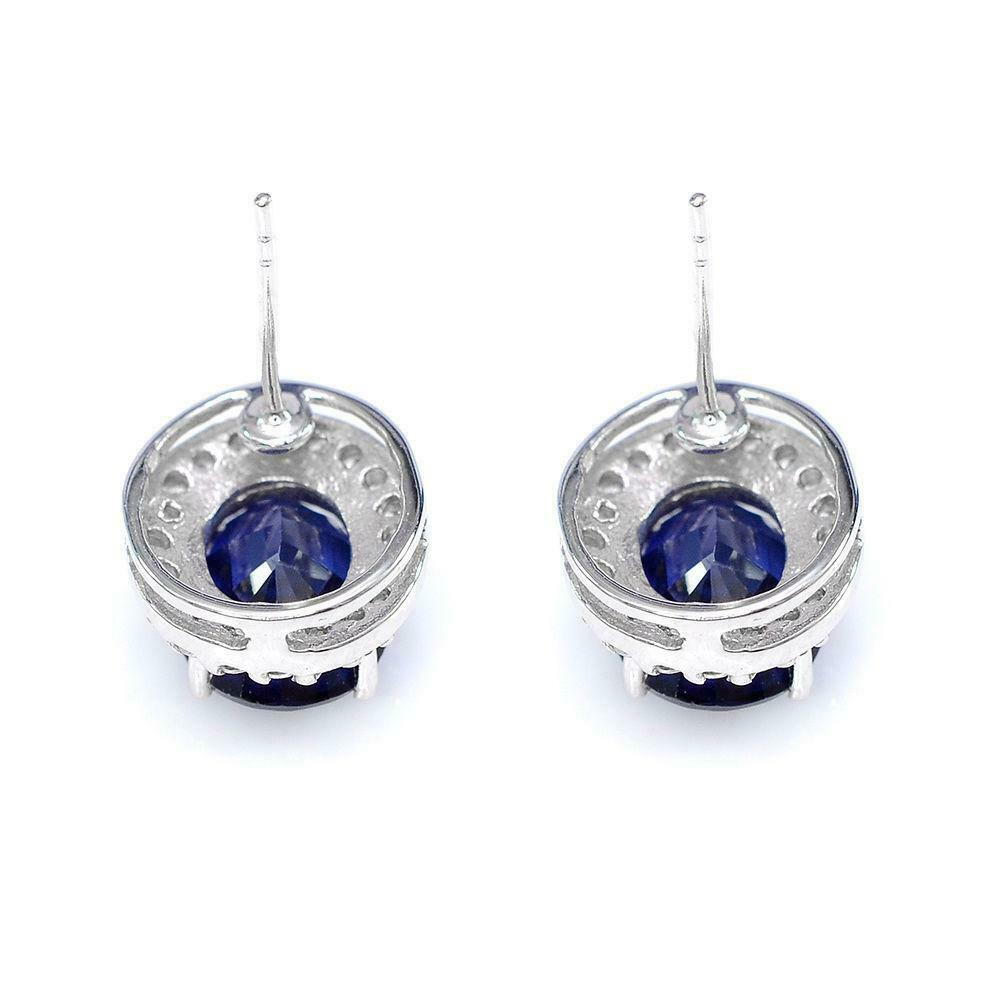 2.2Ct Oval Cut Blue Sapphire Diamond Halo Solitaire Earrings 14K White Gold Over