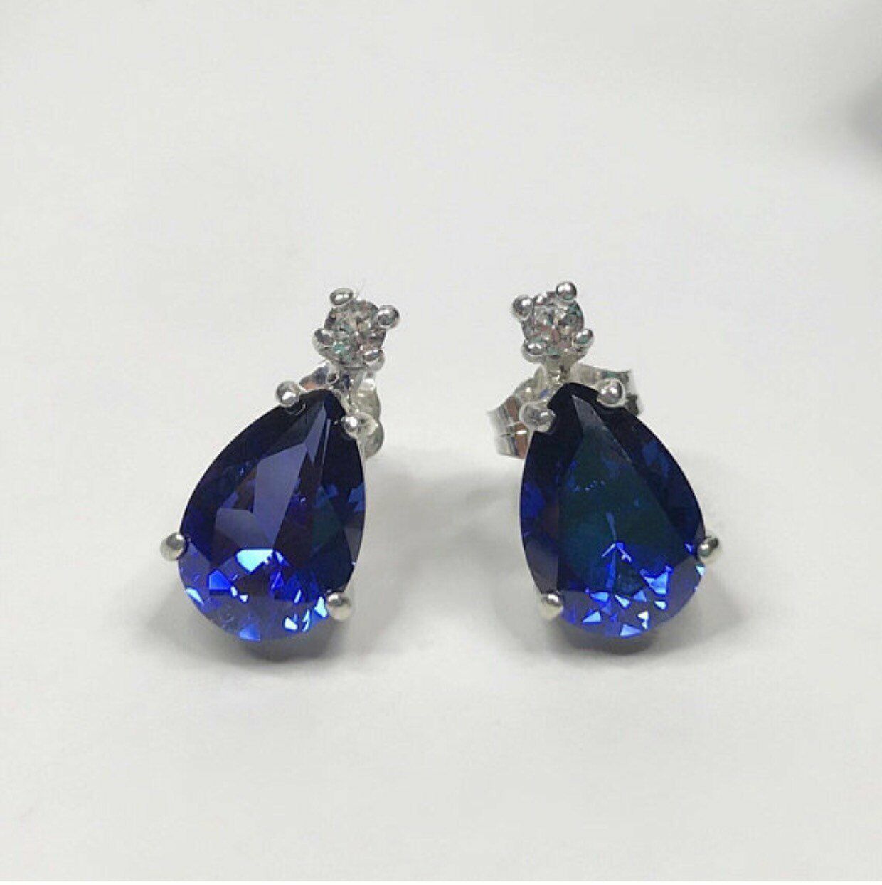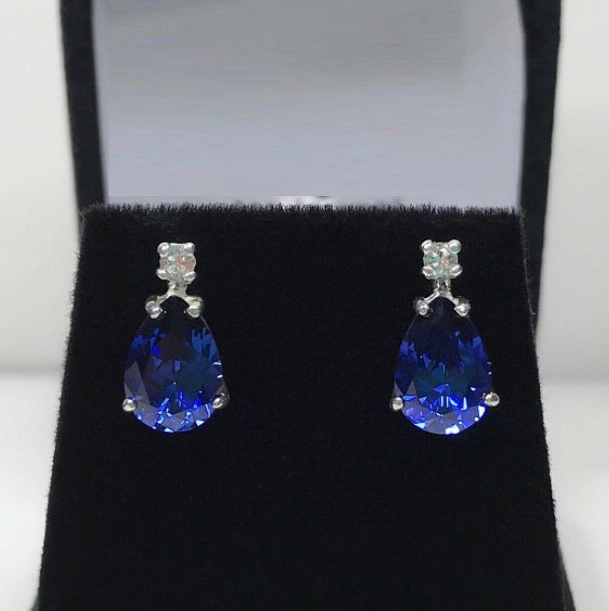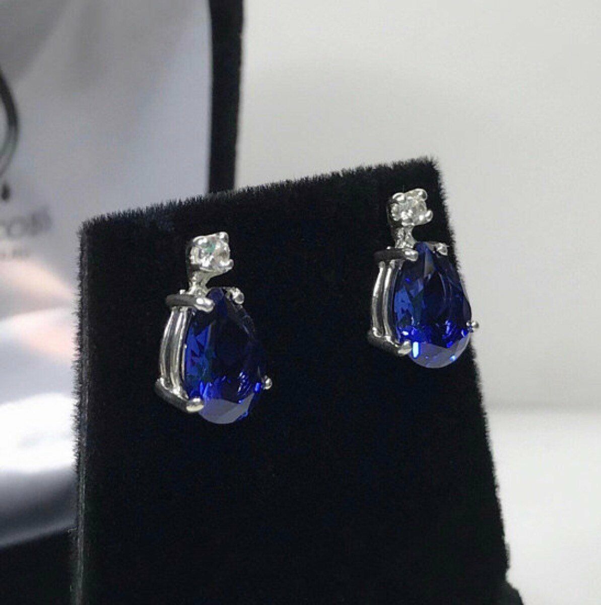2.2ct Pear Cut Blue Sapphire Diamond Elegant Stud Earrings 14k White Gold Finish