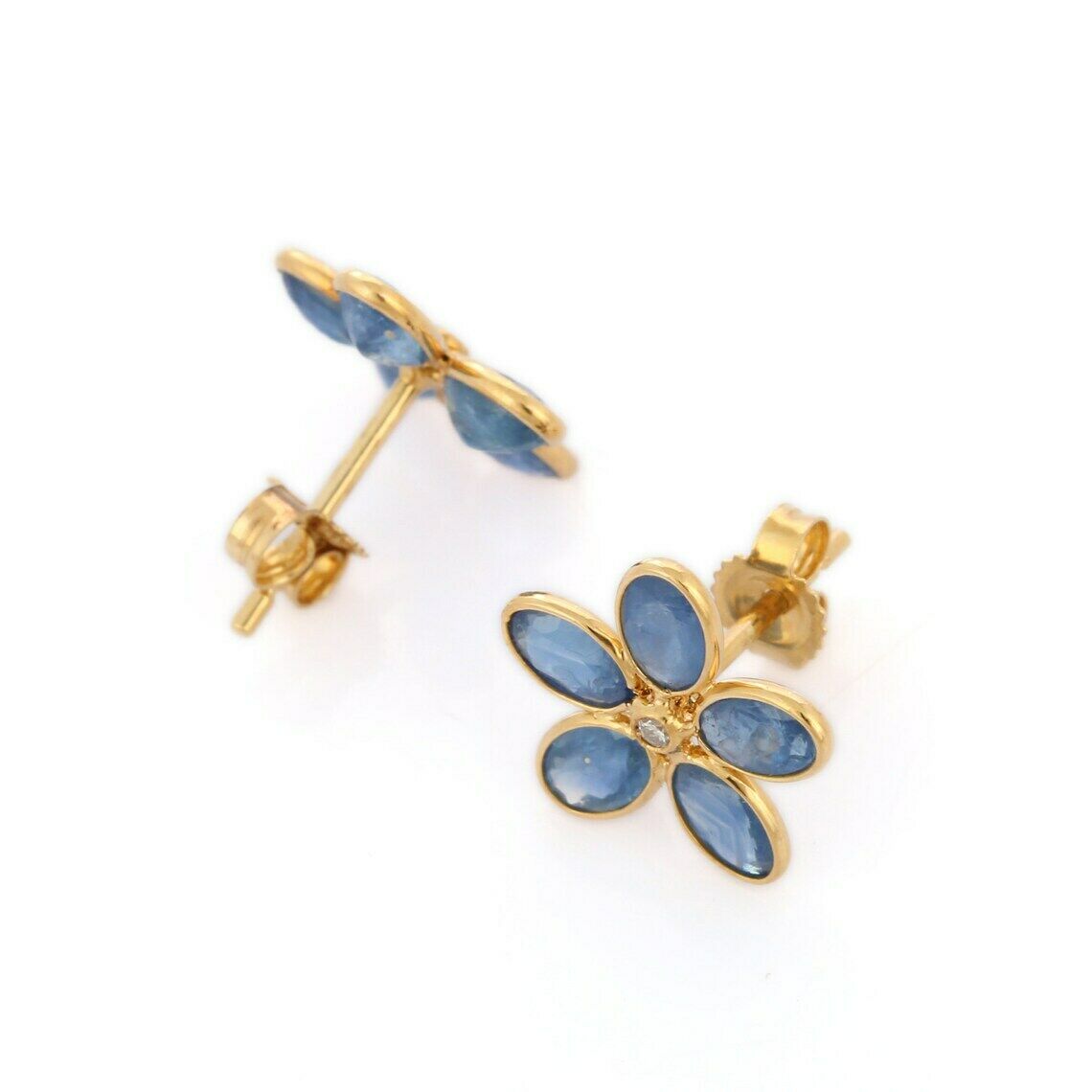 2.2ct Stud Earrings Oval Cut Blue Tanzanite Flower 14k Yellow Gold Finish
