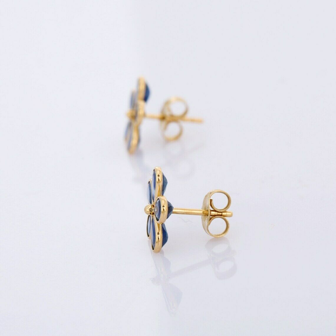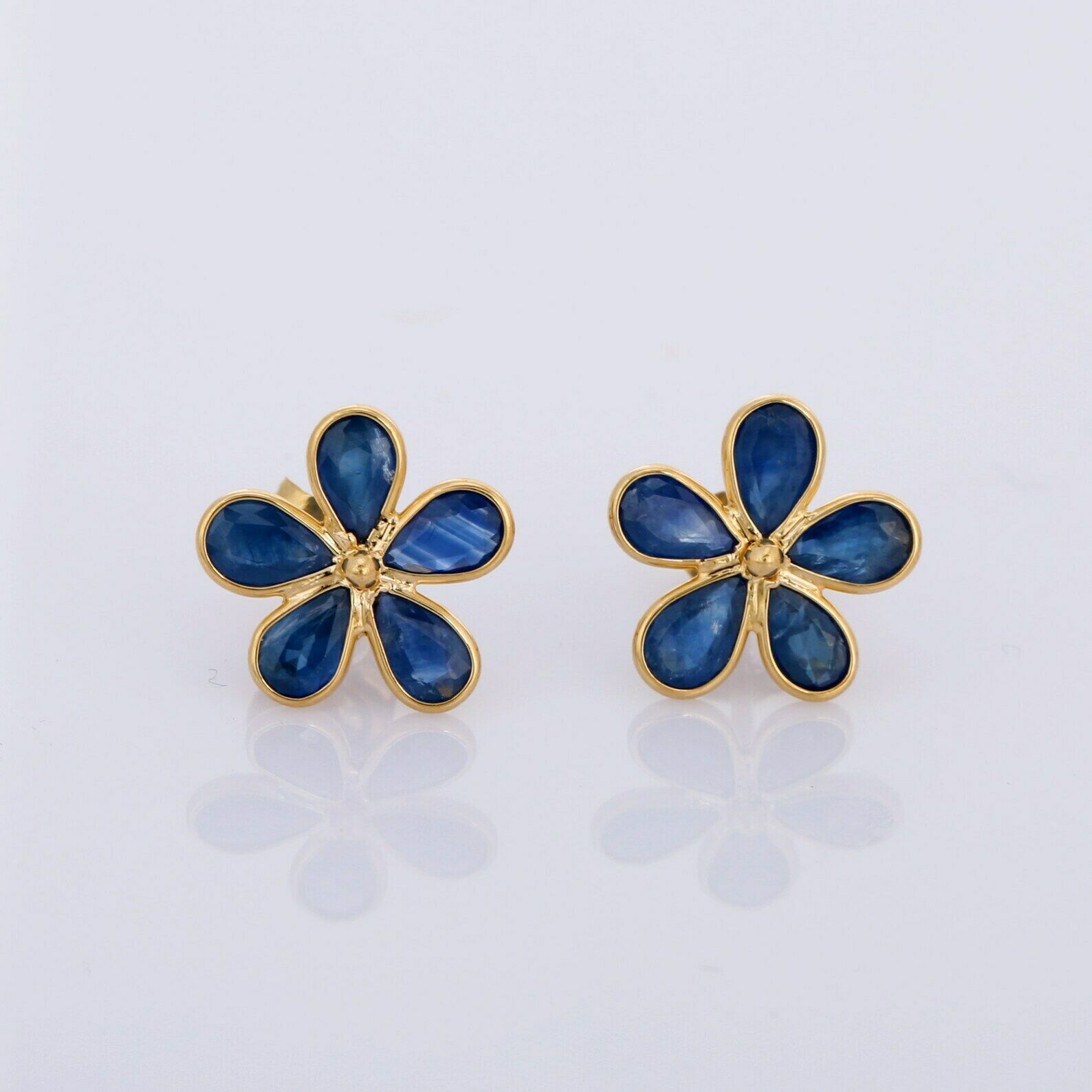 2.2ct Stud Earrings Pear Cut Blue Sapphire Flower 14k Yellow Gold Finish