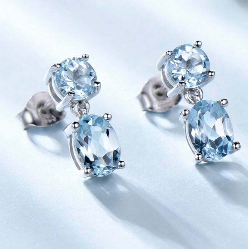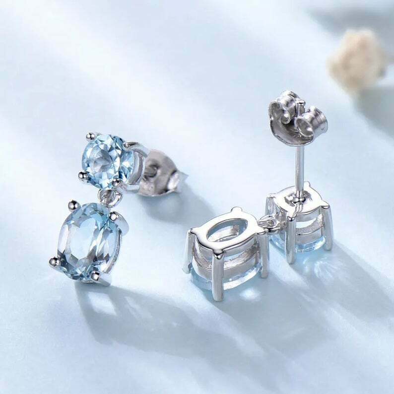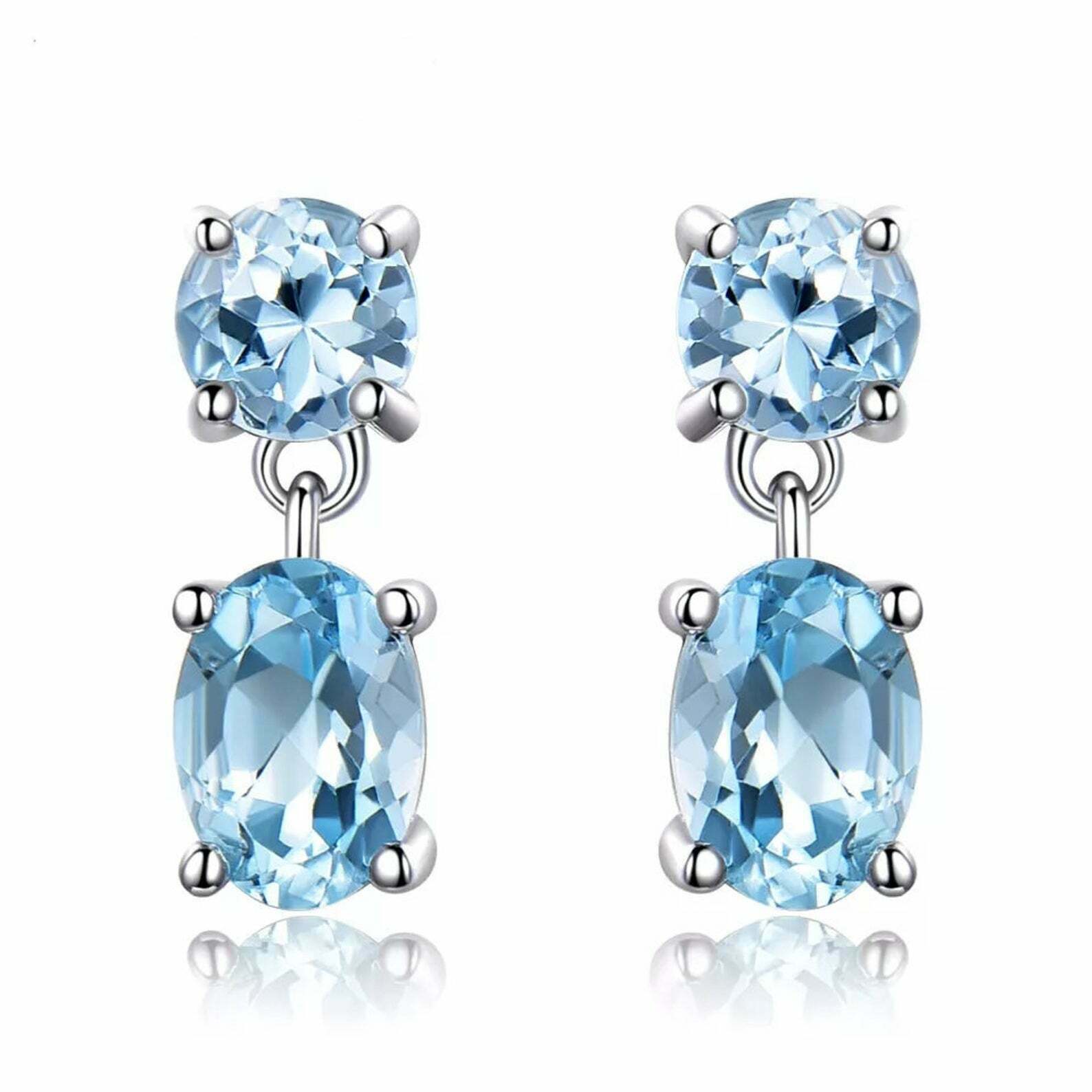 2.3ct Drop Earrings Oval Cut Blue Topaz Two Stone Solitaire 14k WhiteGold Finish