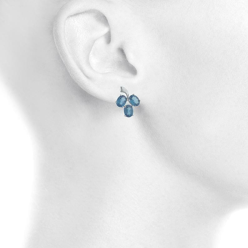 2.3ct Drop Earrings Oval Cut London Blue Topaz Berry Fruit 14k White Gold Finish