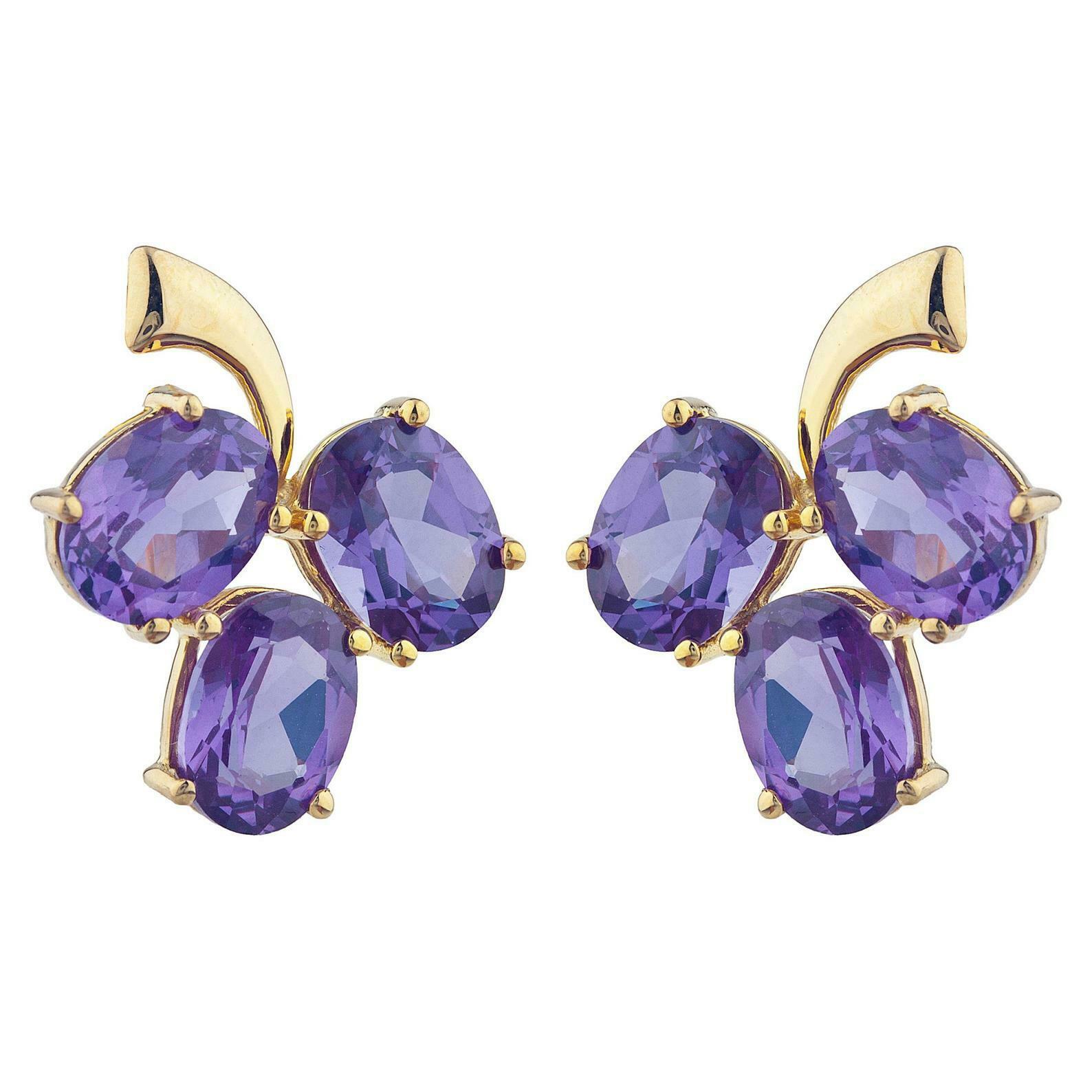 2.3ct Drop Earrings Oval Cut Purple Amethyst Berry Fruit 14k Yellow Gold Finish
