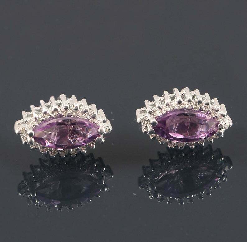 2.3ct Marquise Cut Amethyst Diamond Floral Stud Earrings 14k White Gold Finish