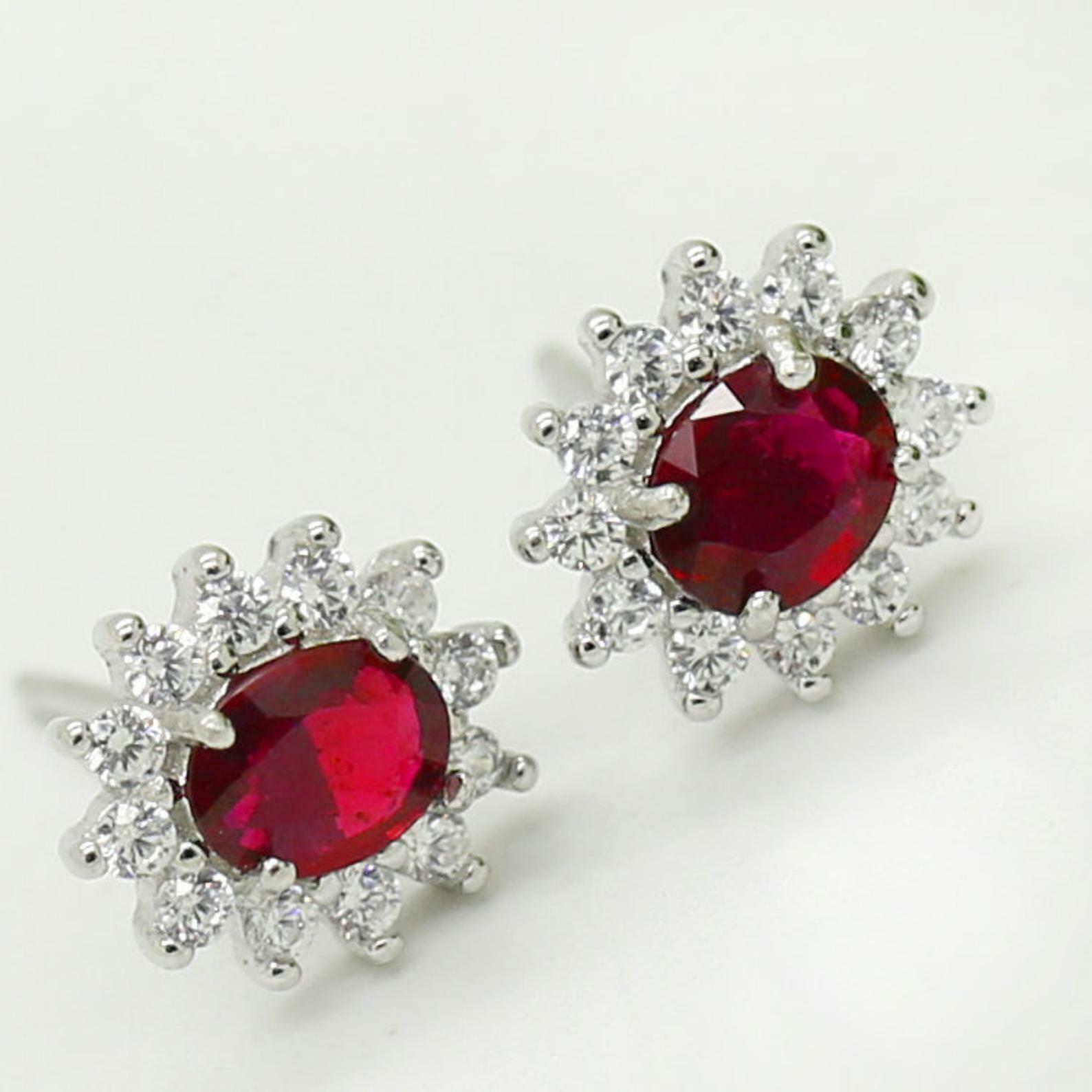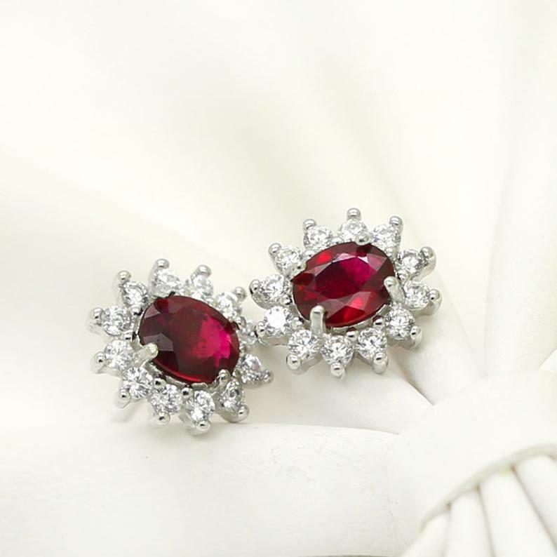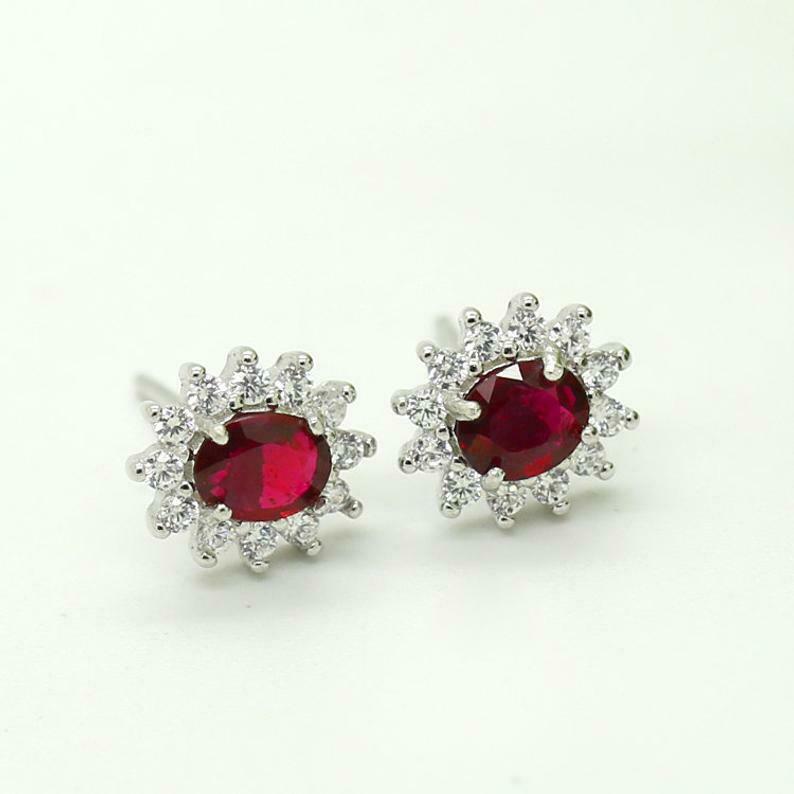 2.3ct Oval Cut Pink Ruby Diamond Floral Halo Stud Earrings 14k White Gold Finish