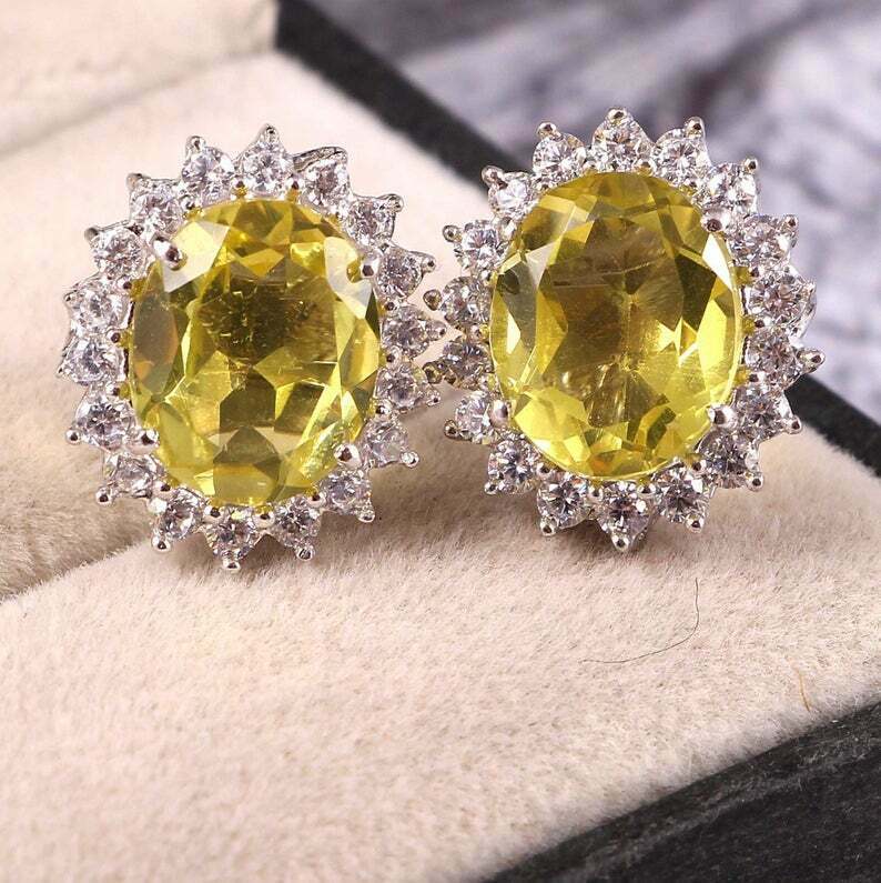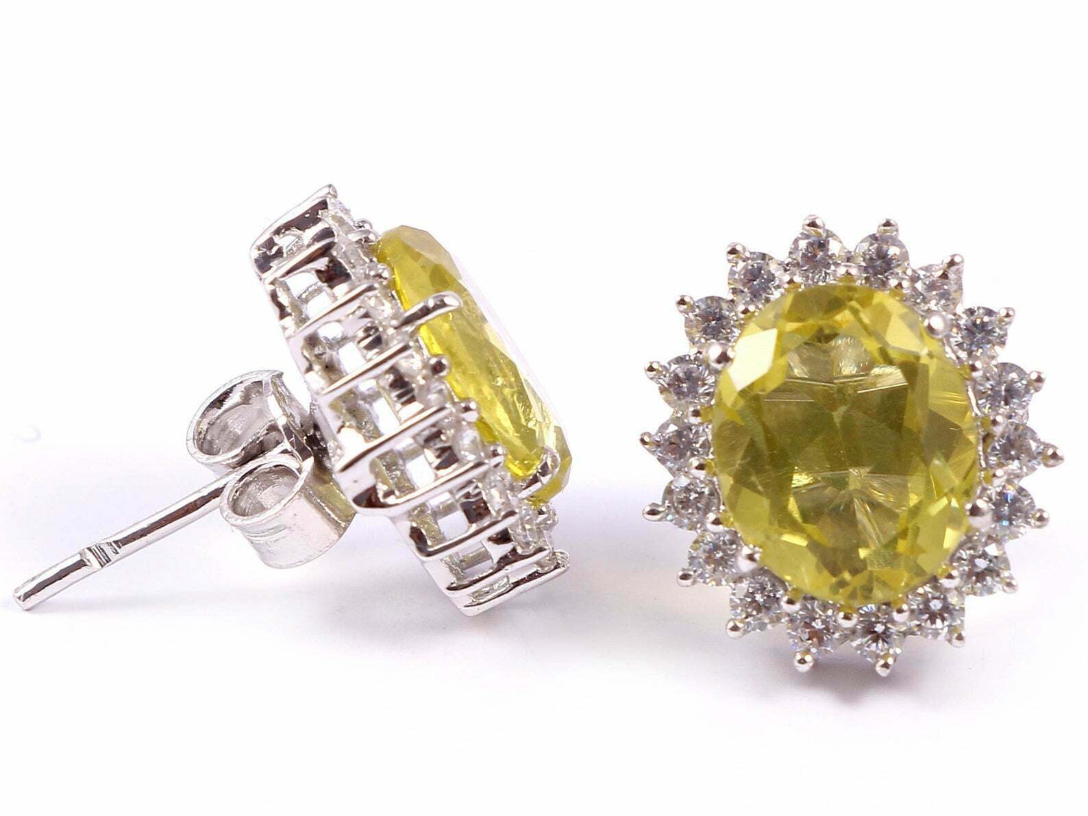 2.3ct Oval Cut Yellow Sapphire Diamond Floral Stud Earrings 14k WhiteGold Finish