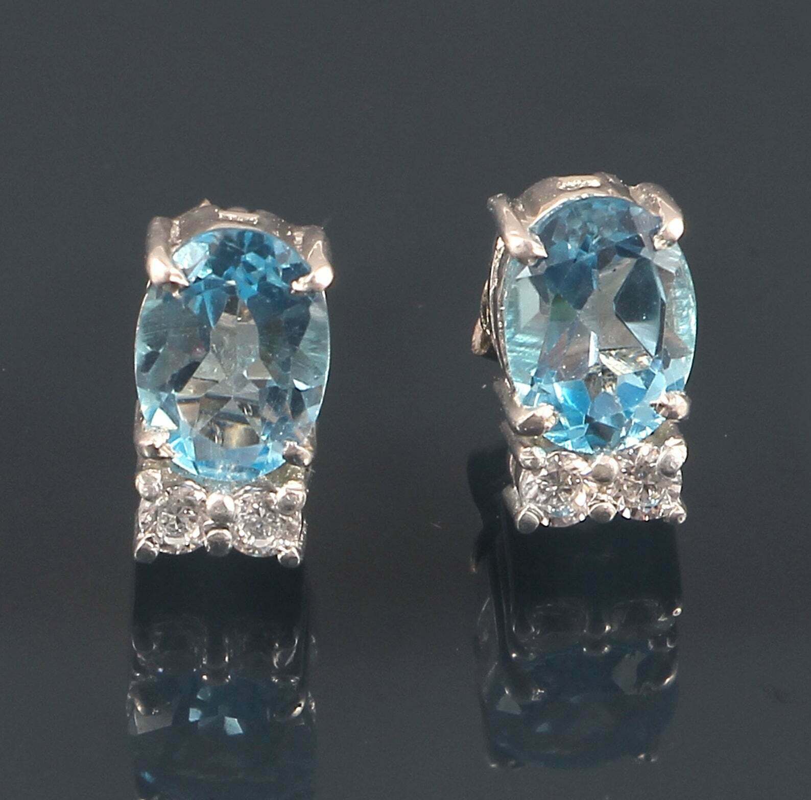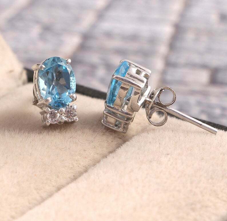 2.3ct Stud Earrings Oval Cut Blue Topaz Dainty Partywear 14k White Gold Finish
